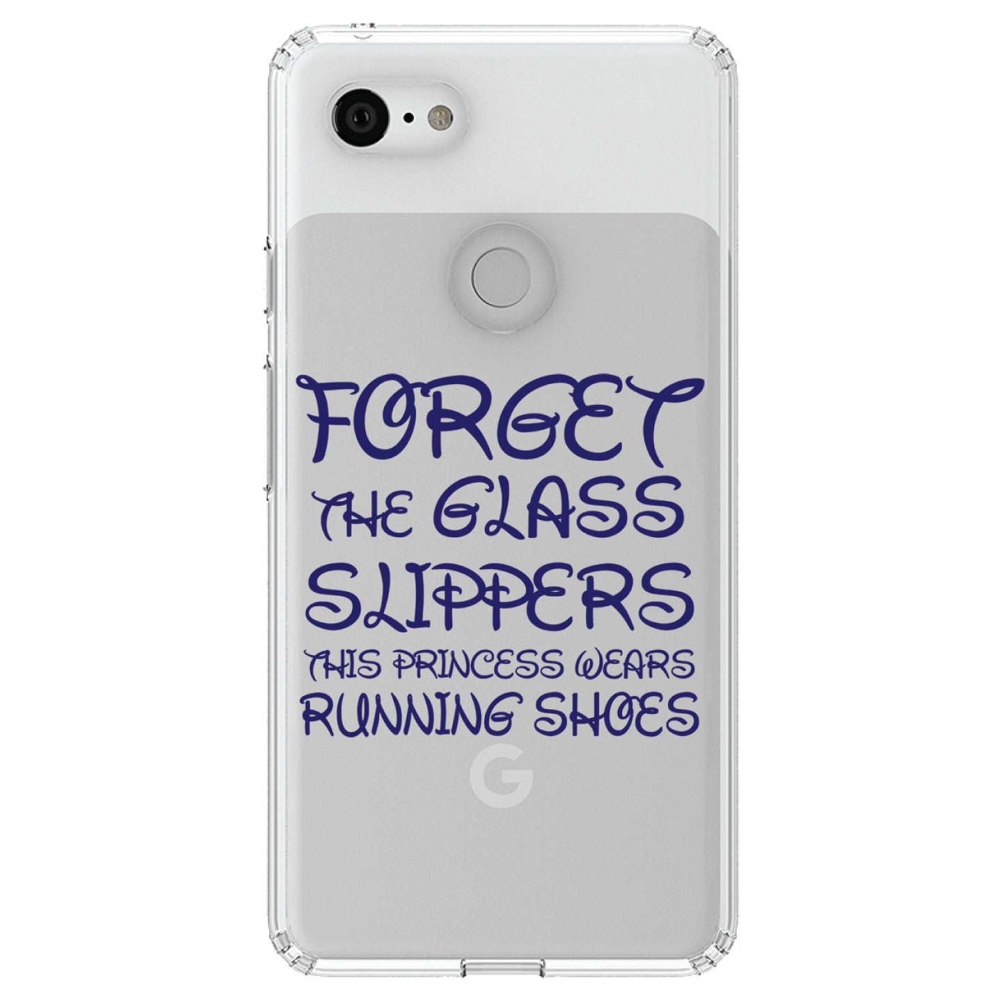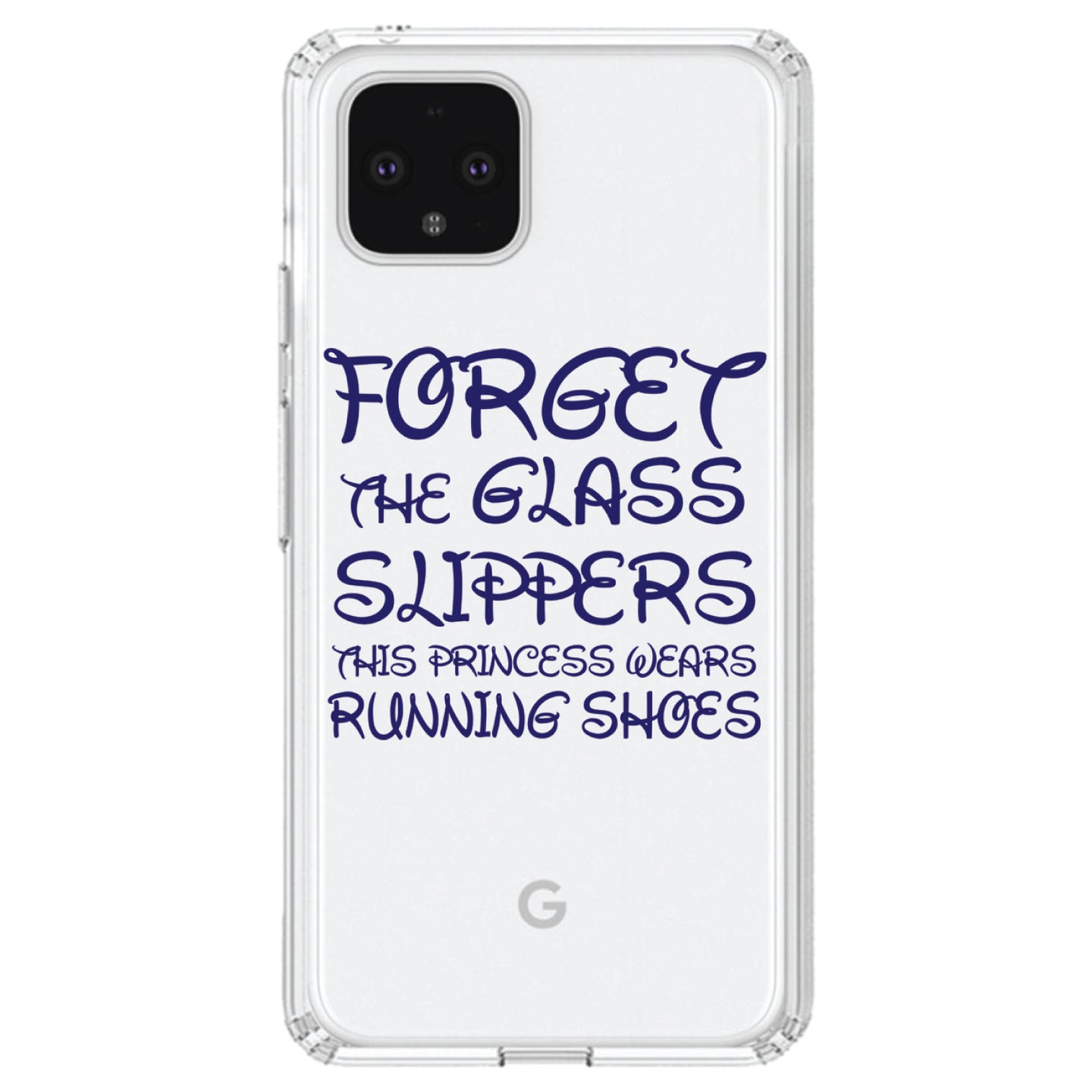 DistinctInk® Clear Shockproof Hybrid Case for Apple iPhone / Samsung Galaxy / Google Pixel - Forget Glass Slippers Princess Wears Running Shoes
