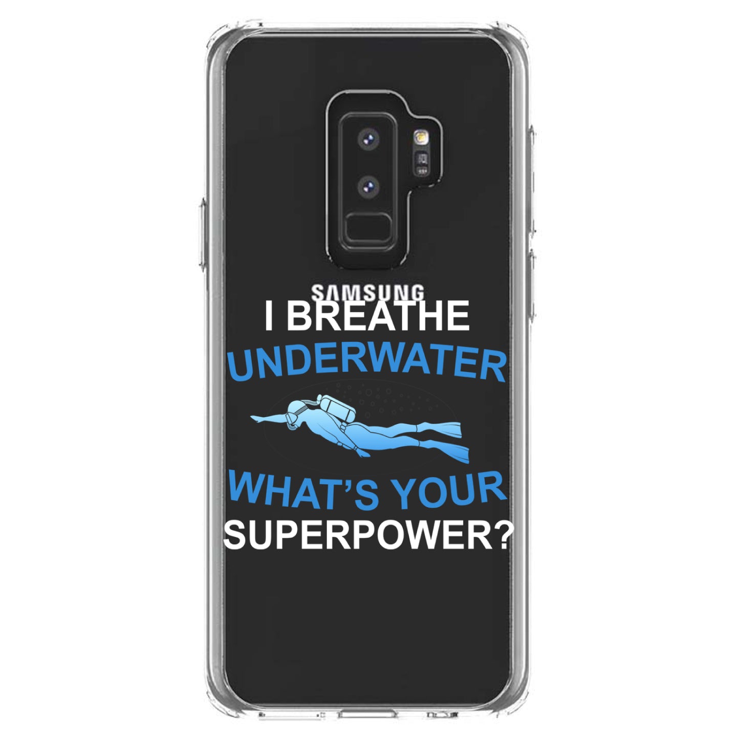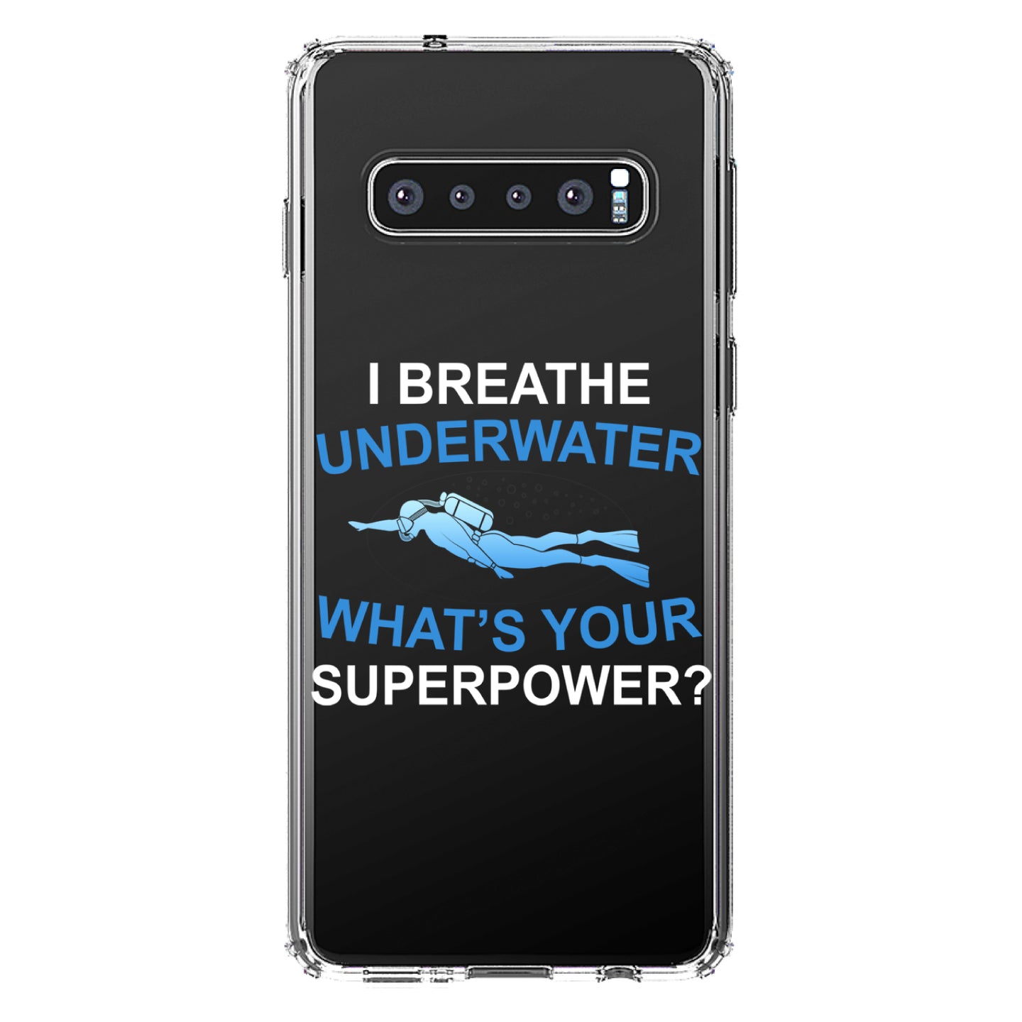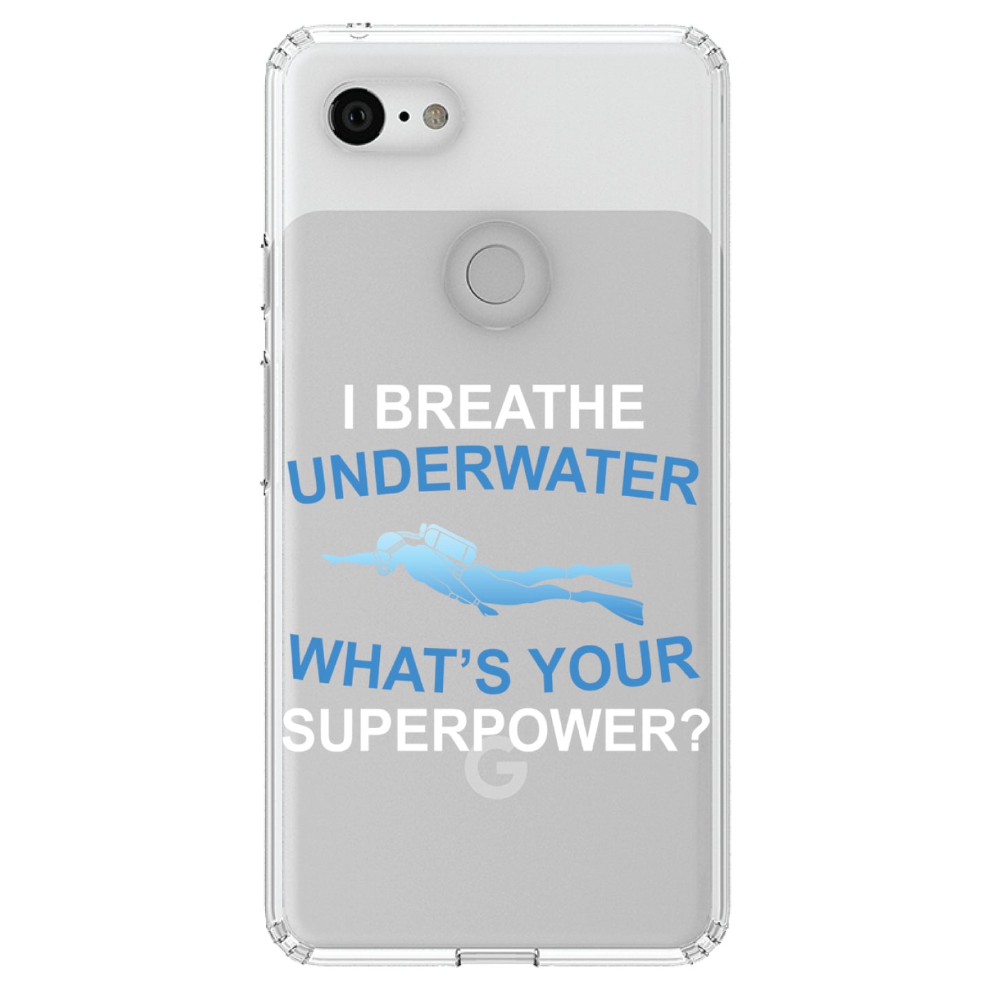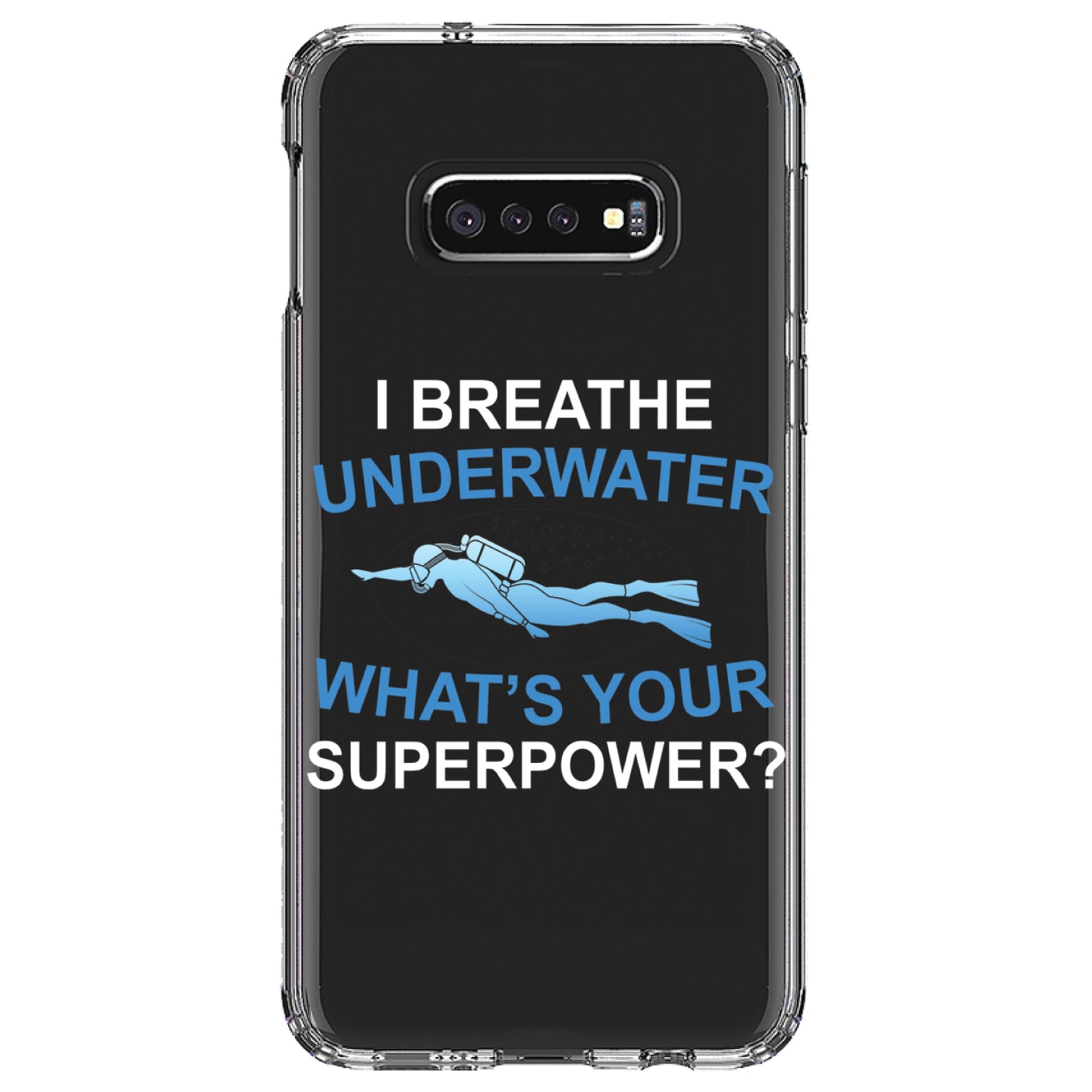 DistinctInk® Clear Shockproof Hybrid Case for Apple iPhone / Samsung Galaxy / Google Pixel - I Breathe Underwater What's Your Superpower