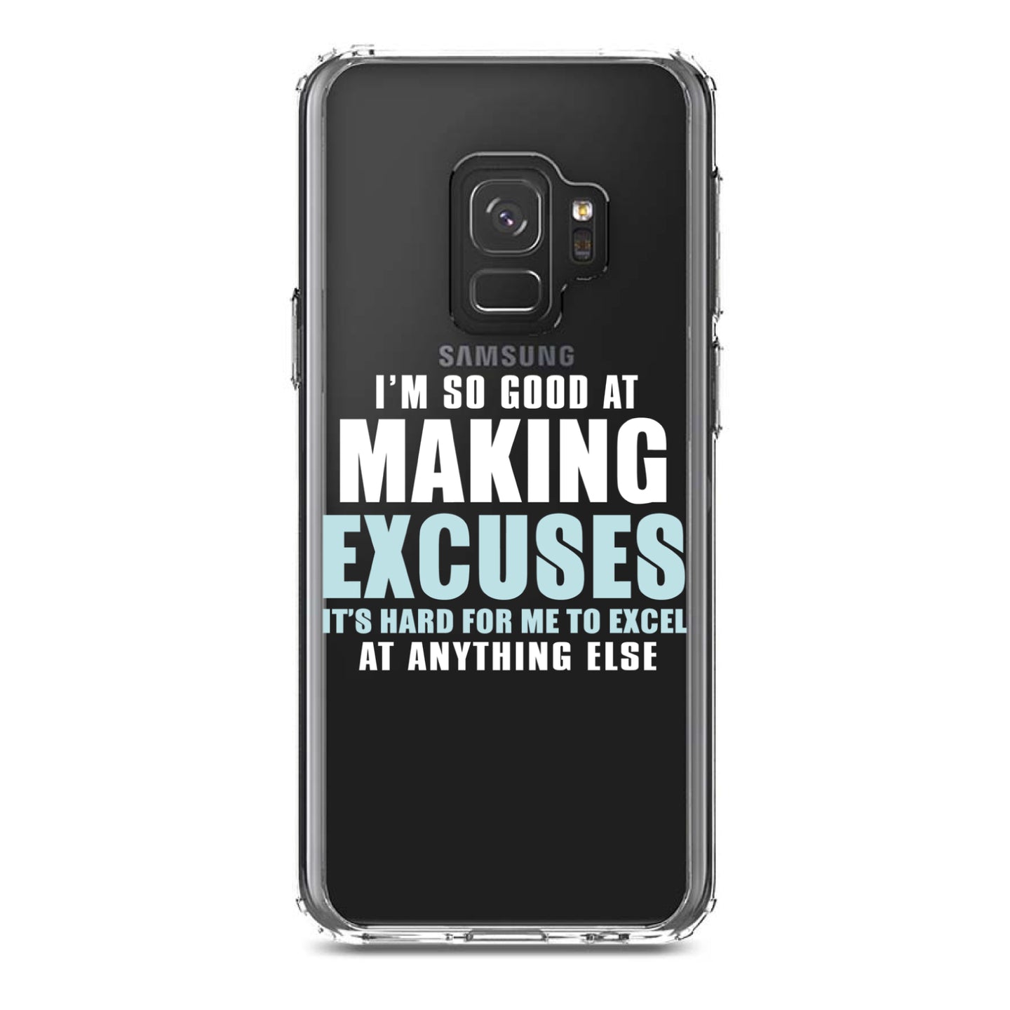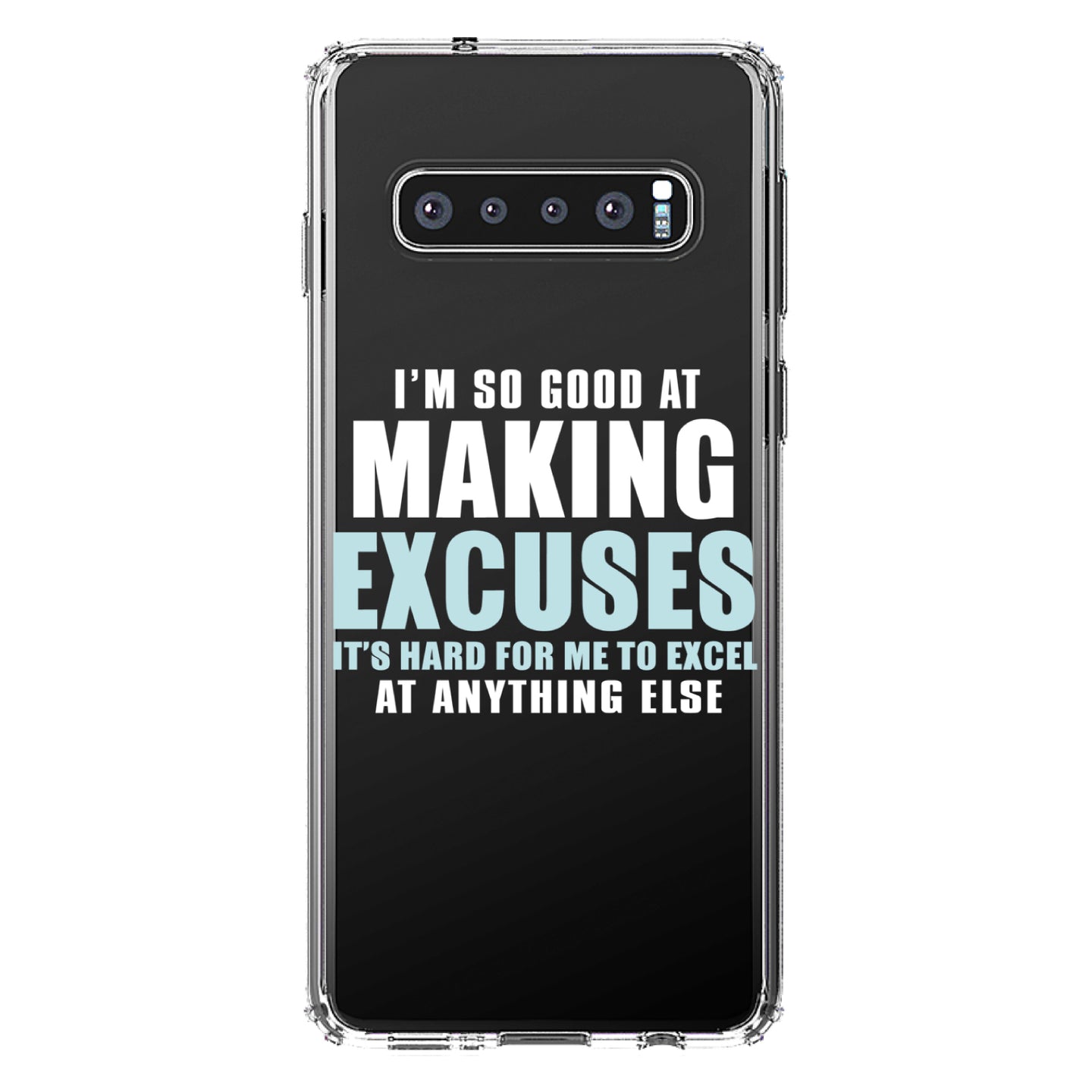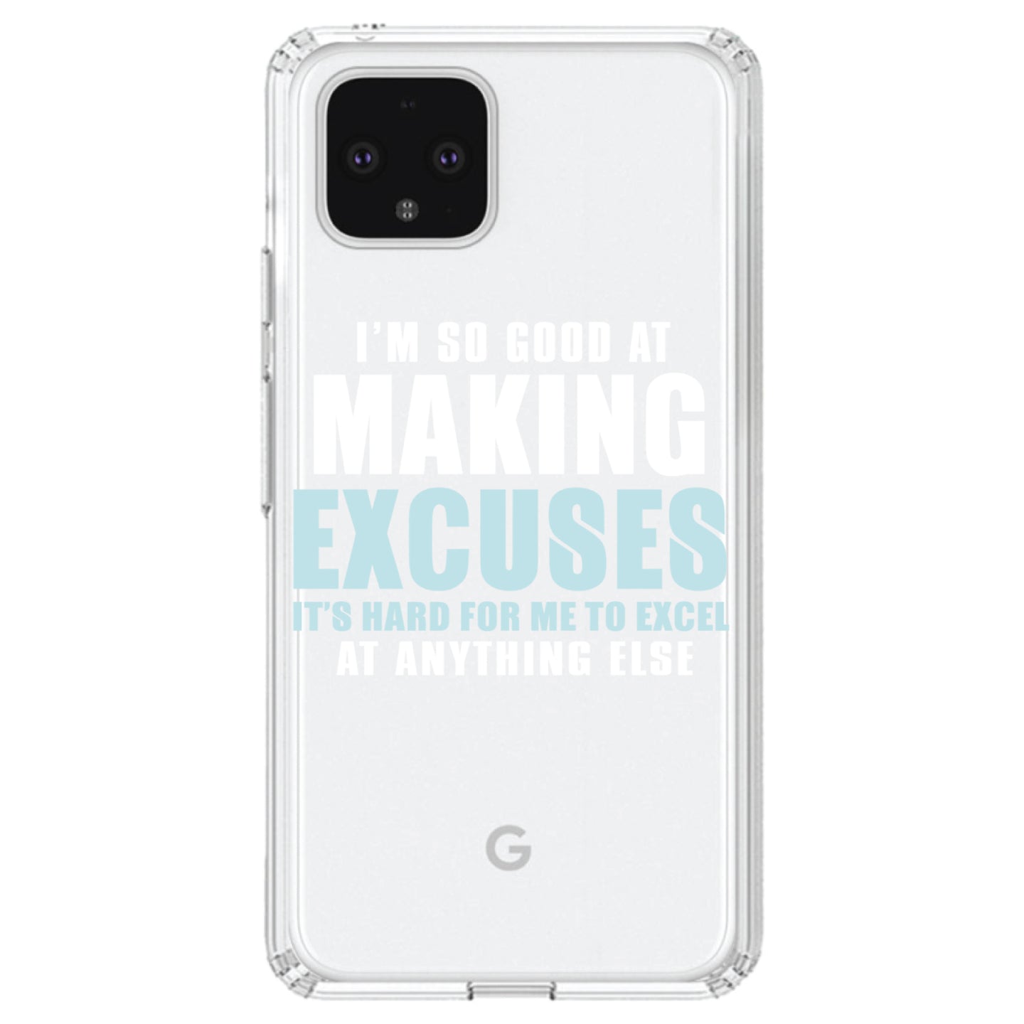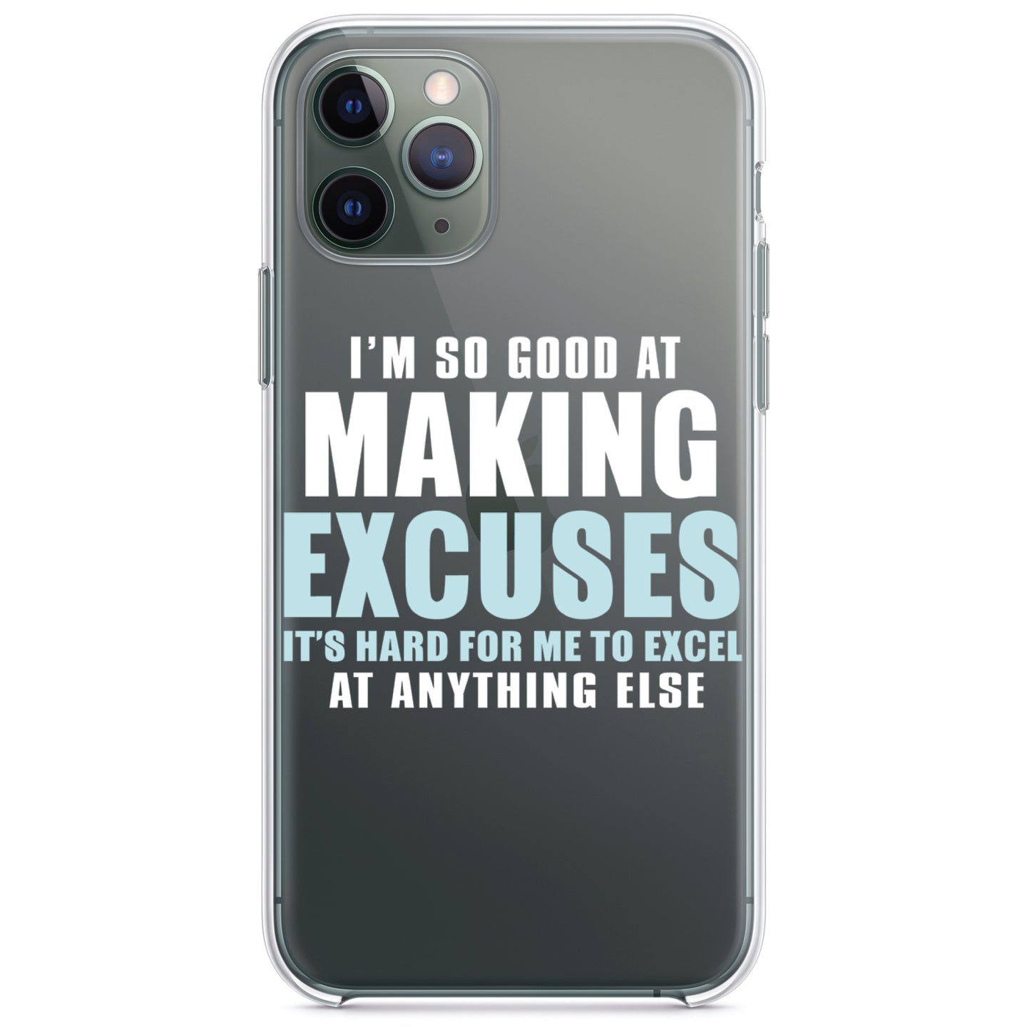 DistinctInk® Clear Shockproof Hybrid Case for Apple iPhone / Samsung Galaxy / Google Pixel - I'm So Good at Making Excuses
