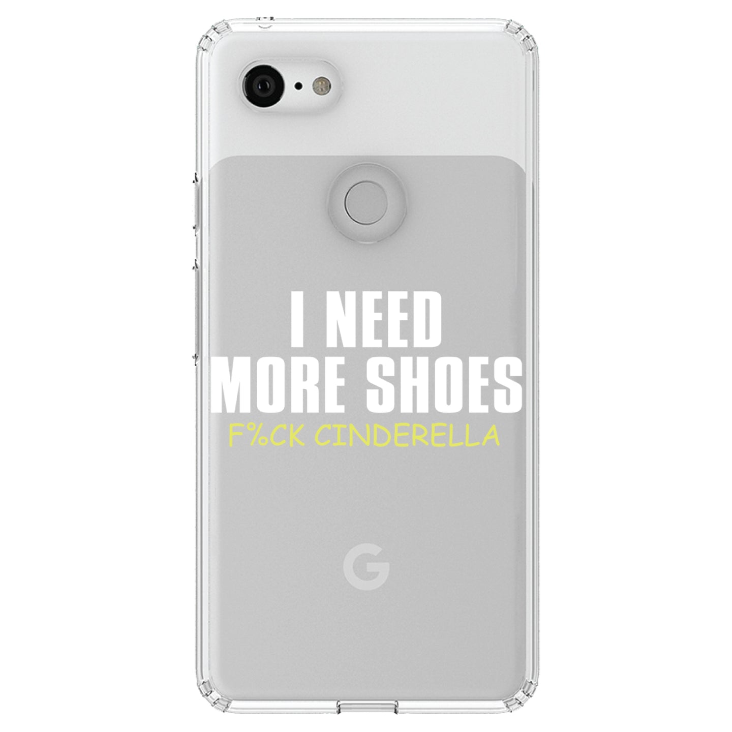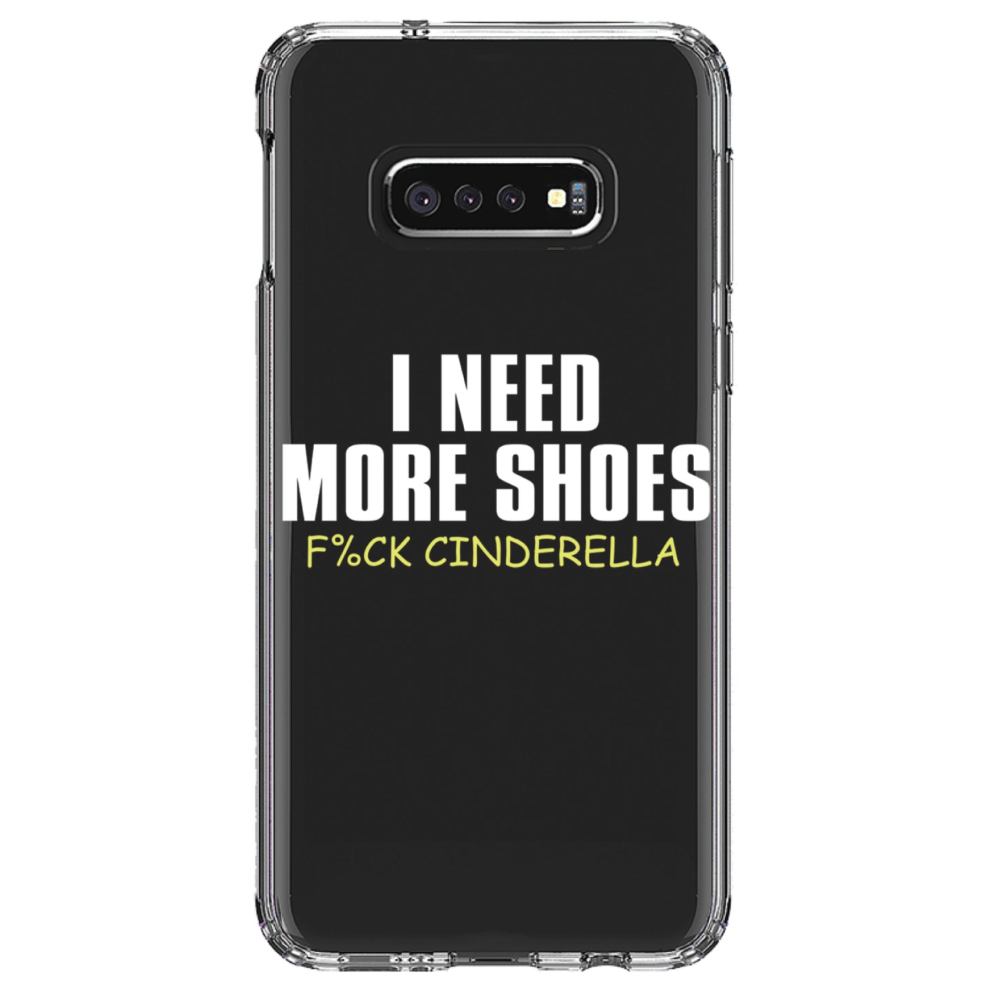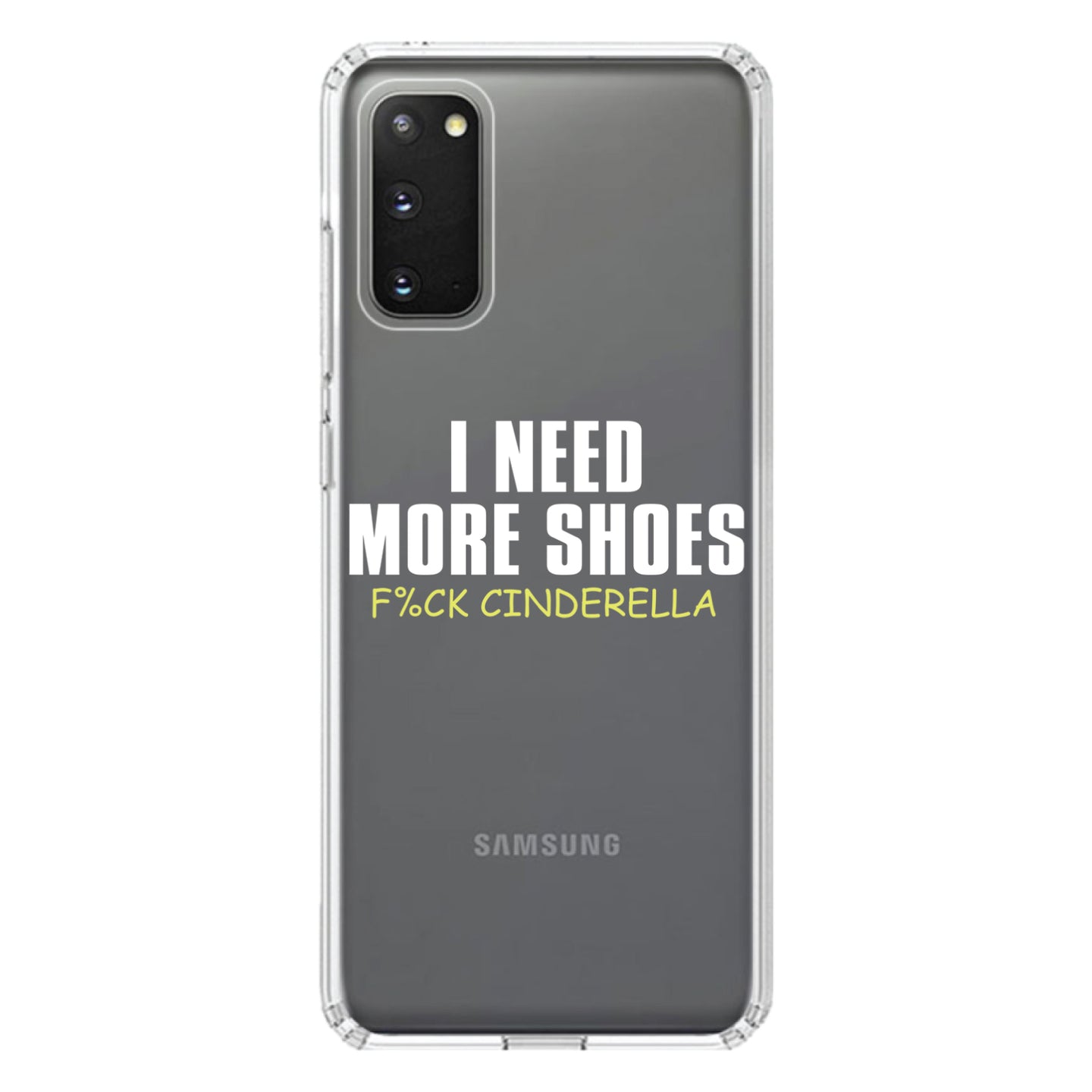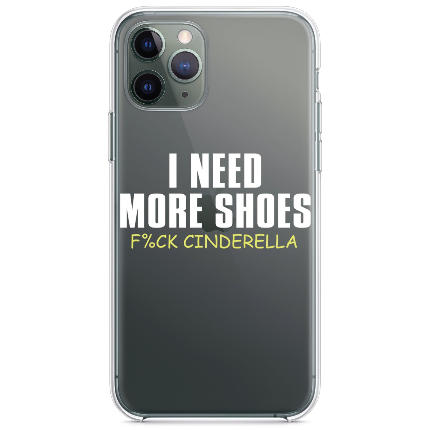 DistinctInk® Clear Shockproof Hybrid Case for Apple iPhone / Samsung Galaxy / Google Pixel - I Need More Shoes - F%ck Cinderella