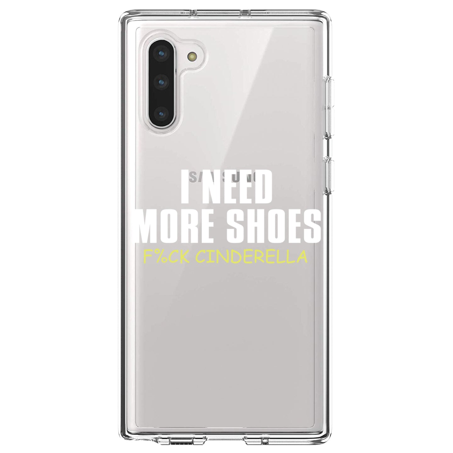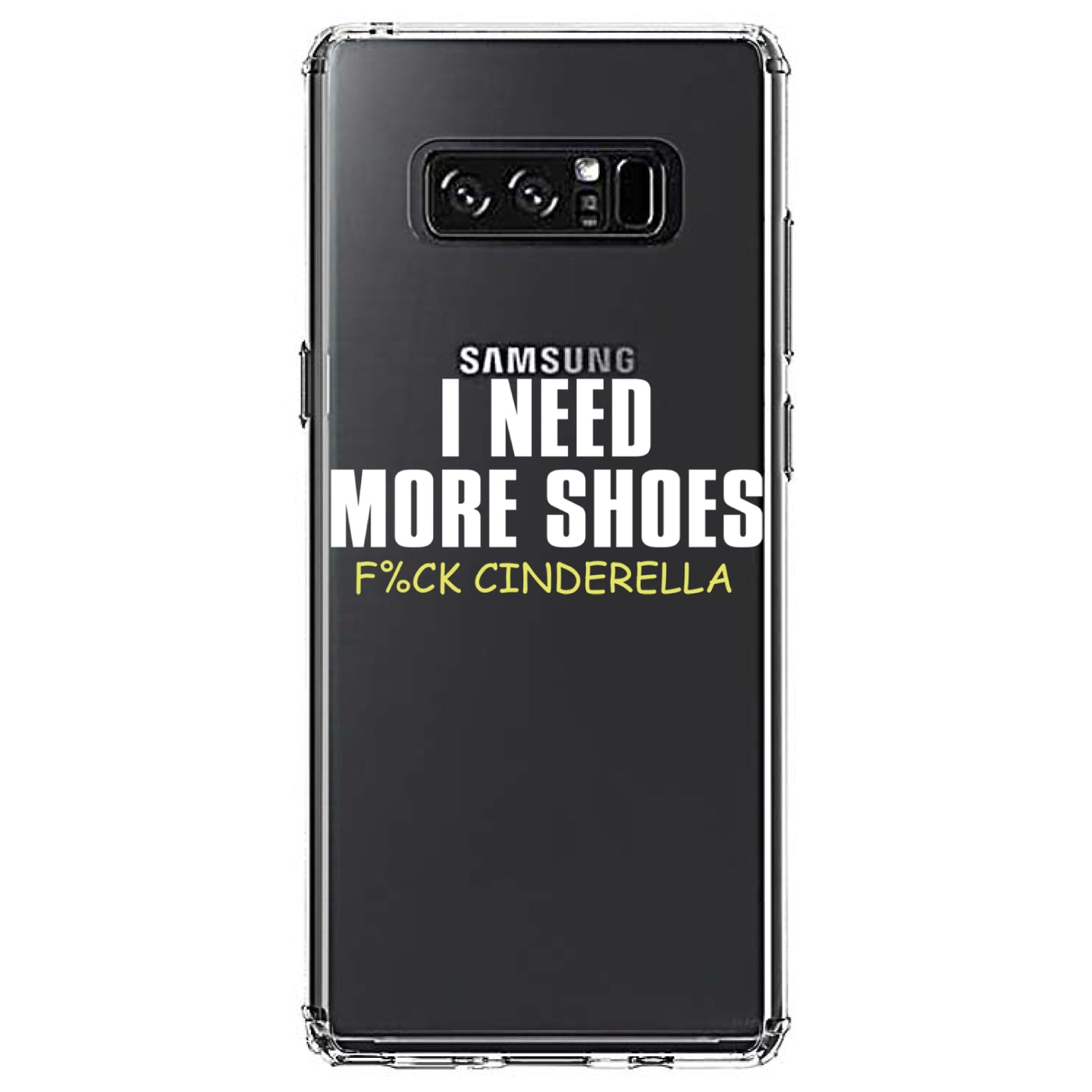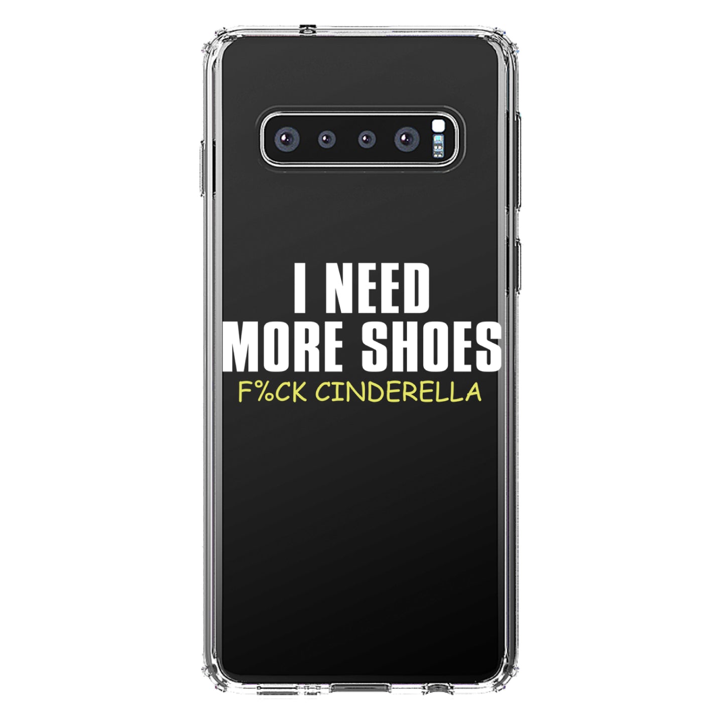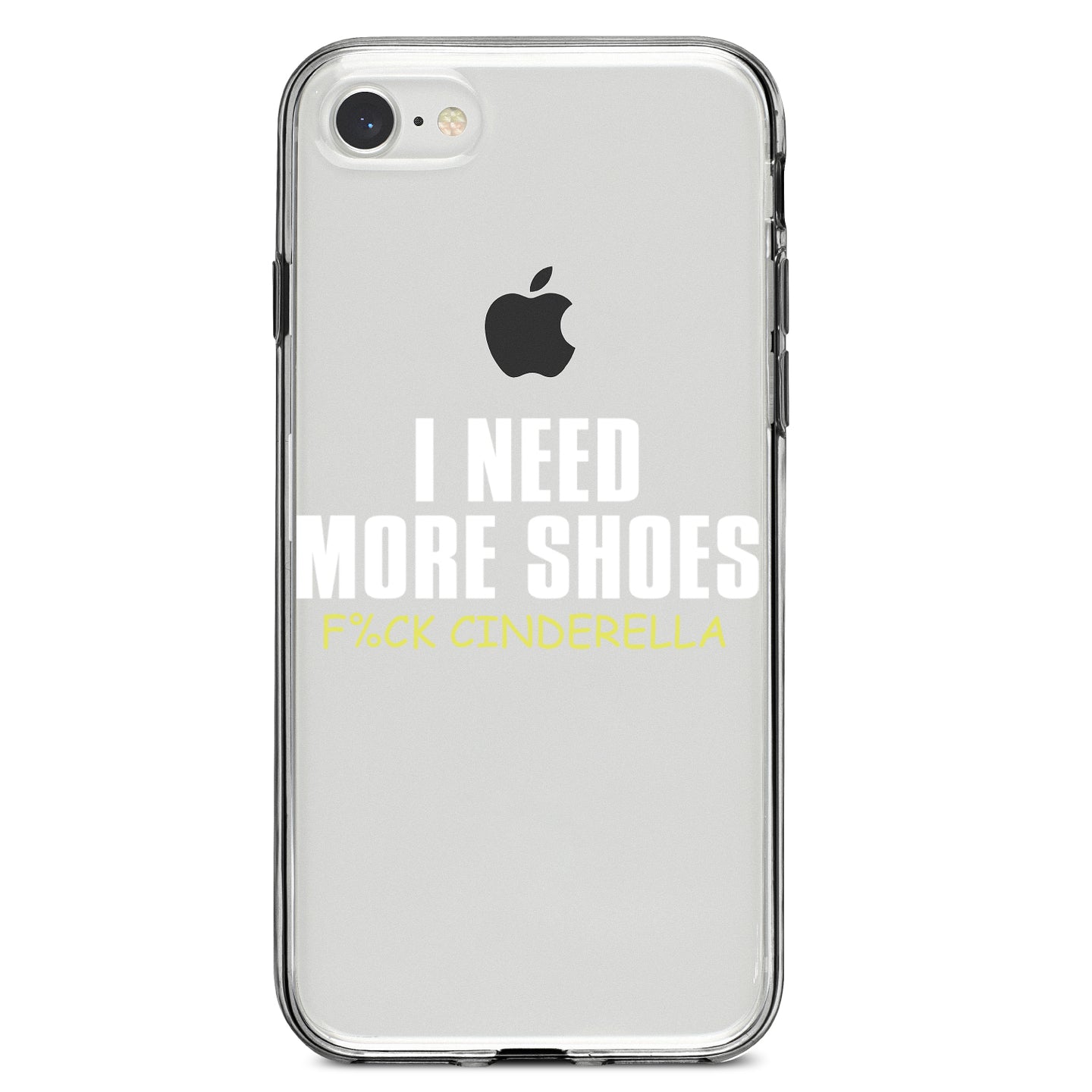 DistinctInk® Clear Shockproof Hybrid Case for Apple iPhone / Samsung Galaxy / Google Pixel - I Need More Shoes - F%ck Cinderella