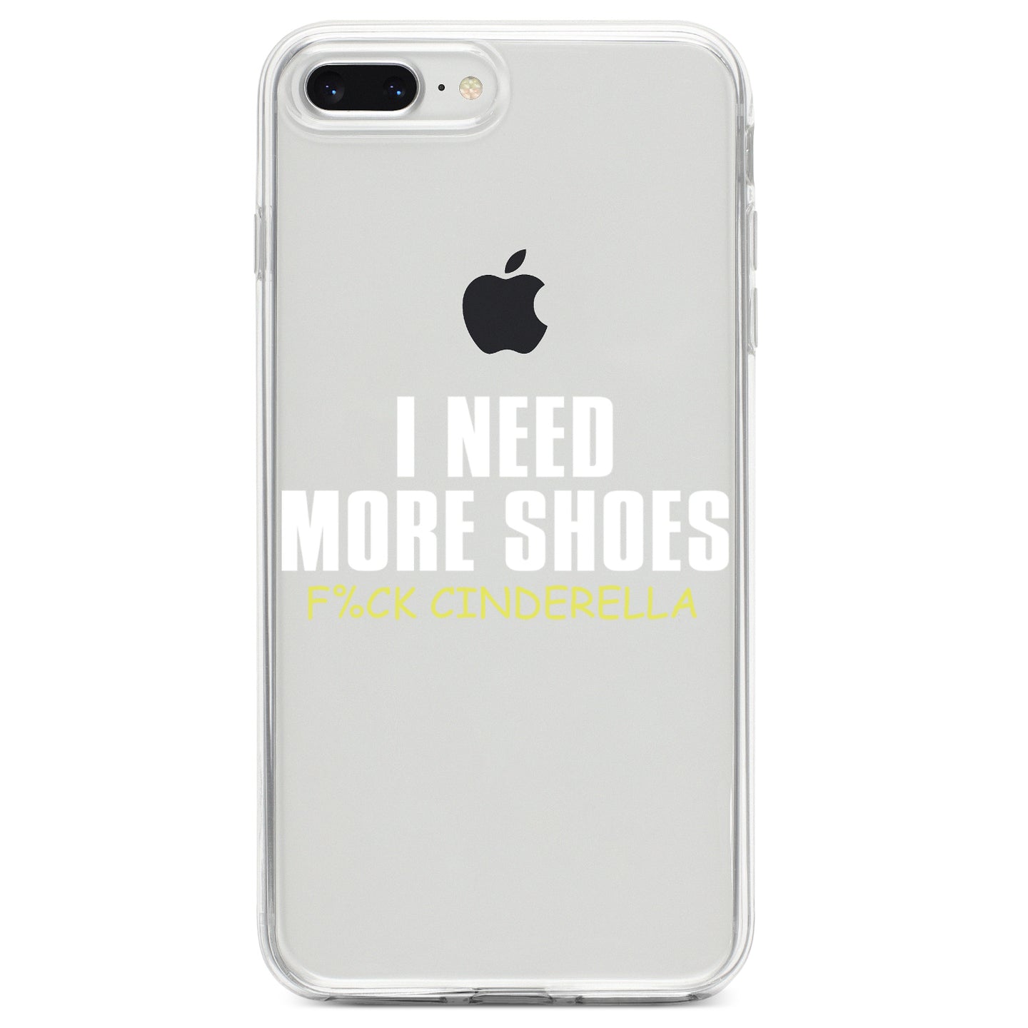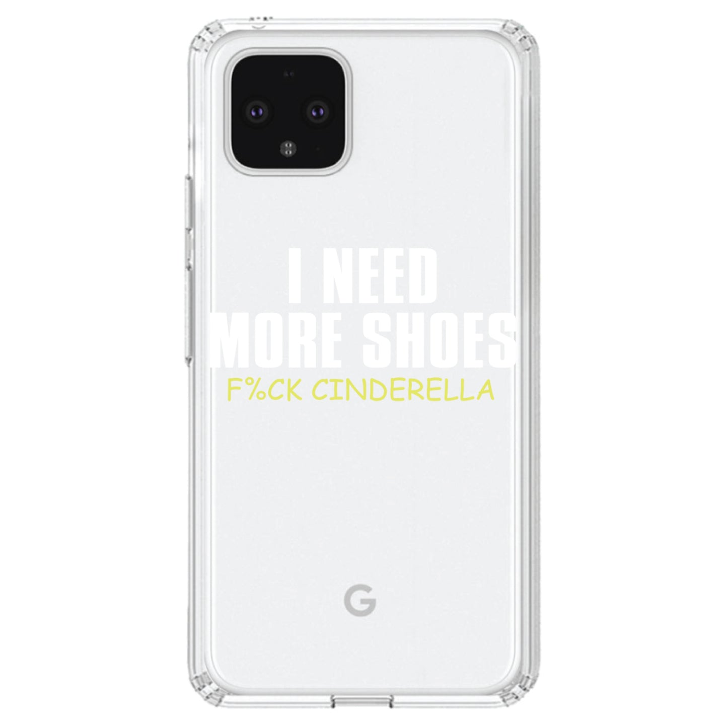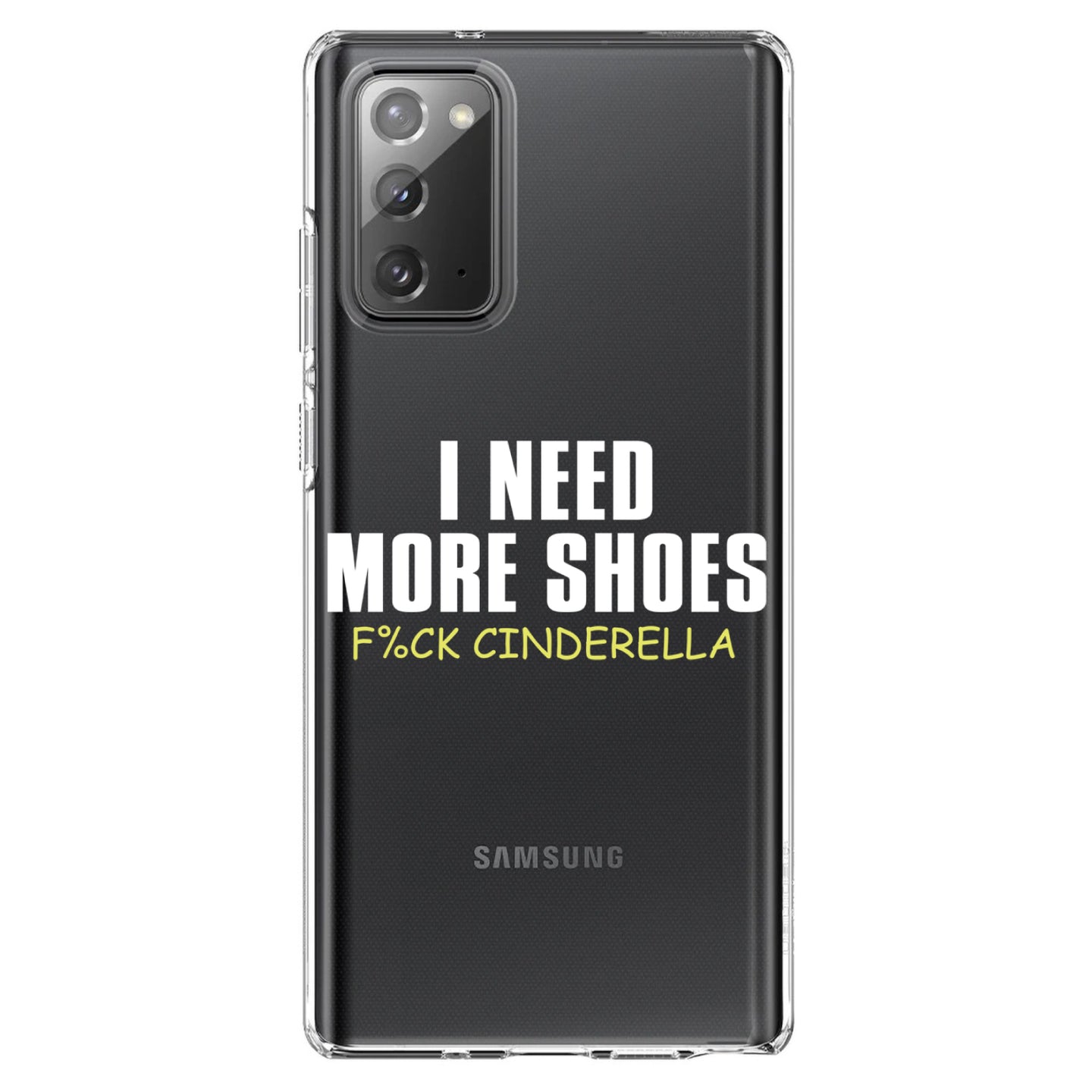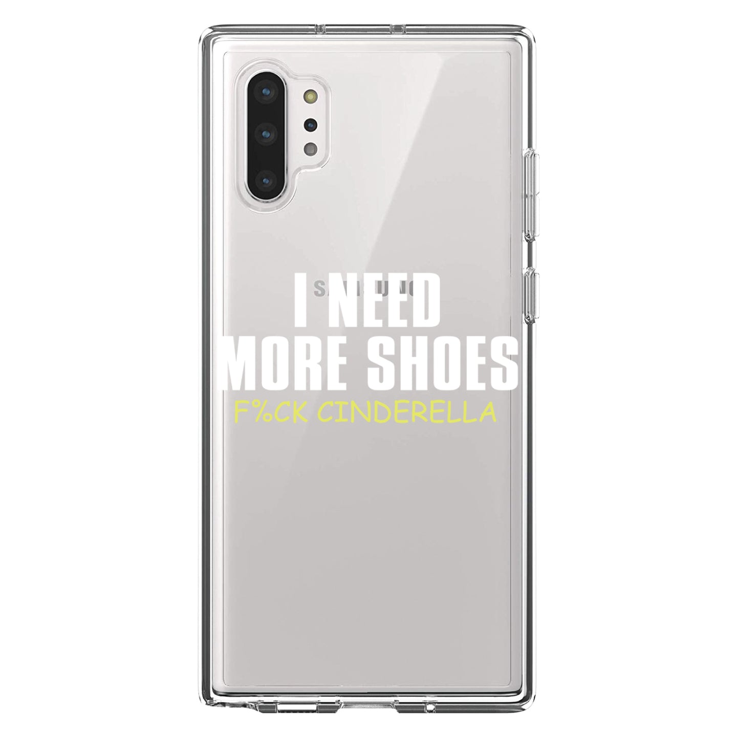 DistinctInk® Clear Shockproof Hybrid Case for Apple iPhone / Samsung Galaxy / Google Pixel - I Need More Shoes - F%ck Cinderella