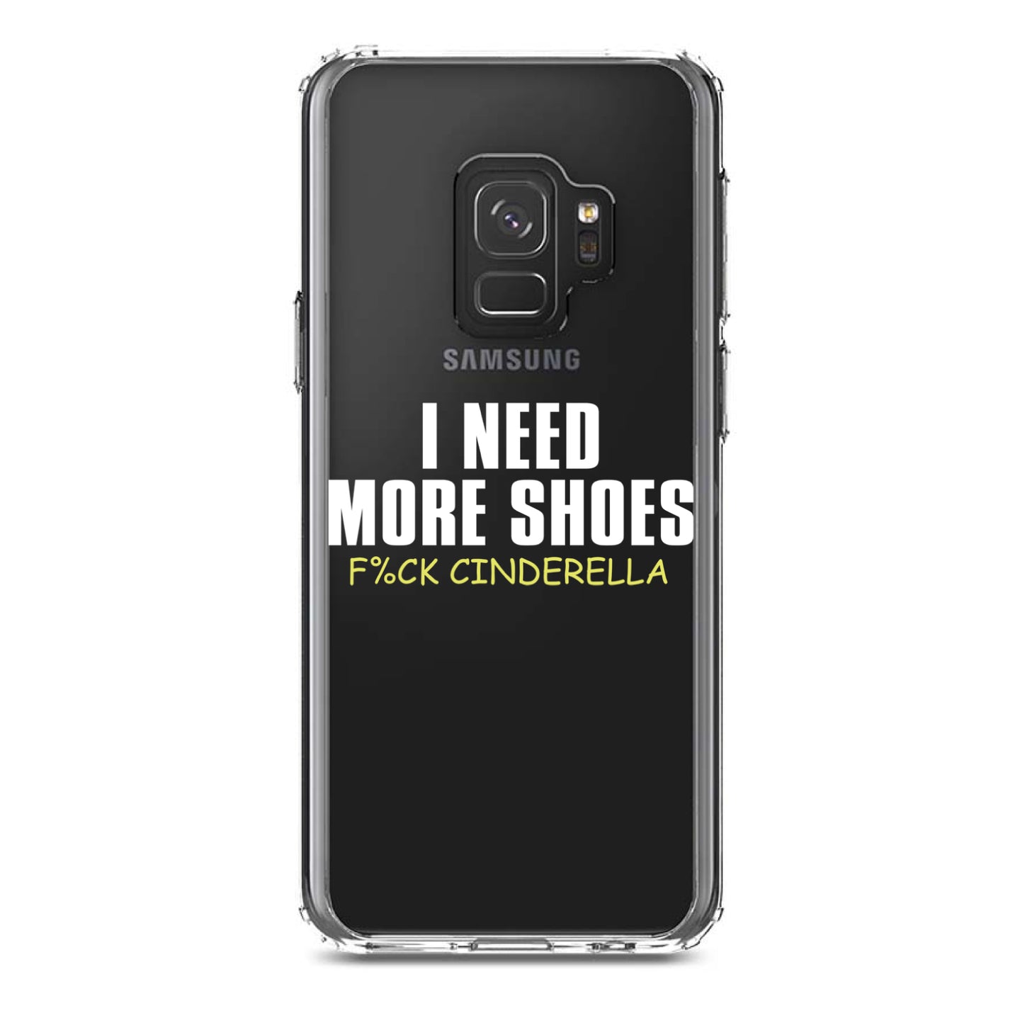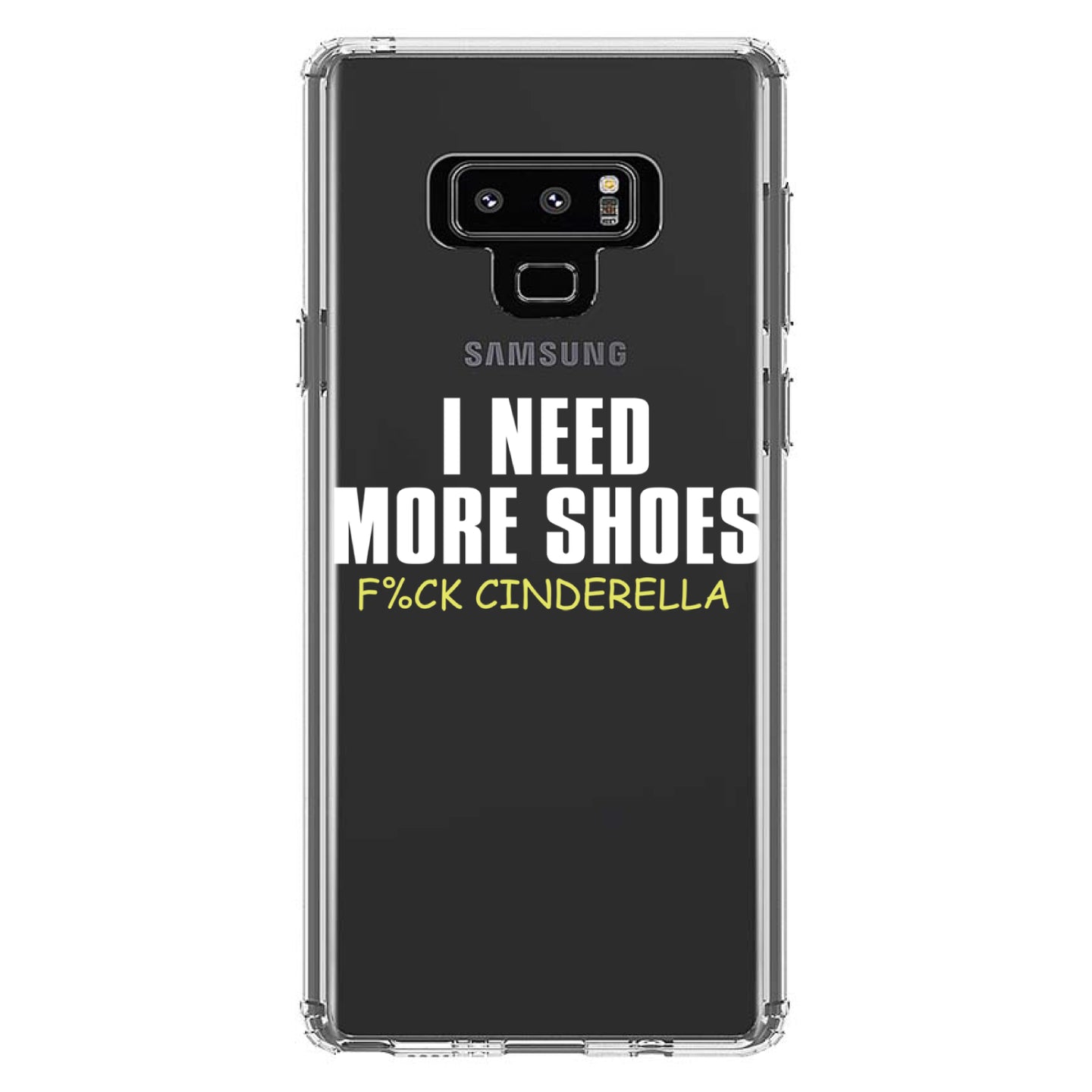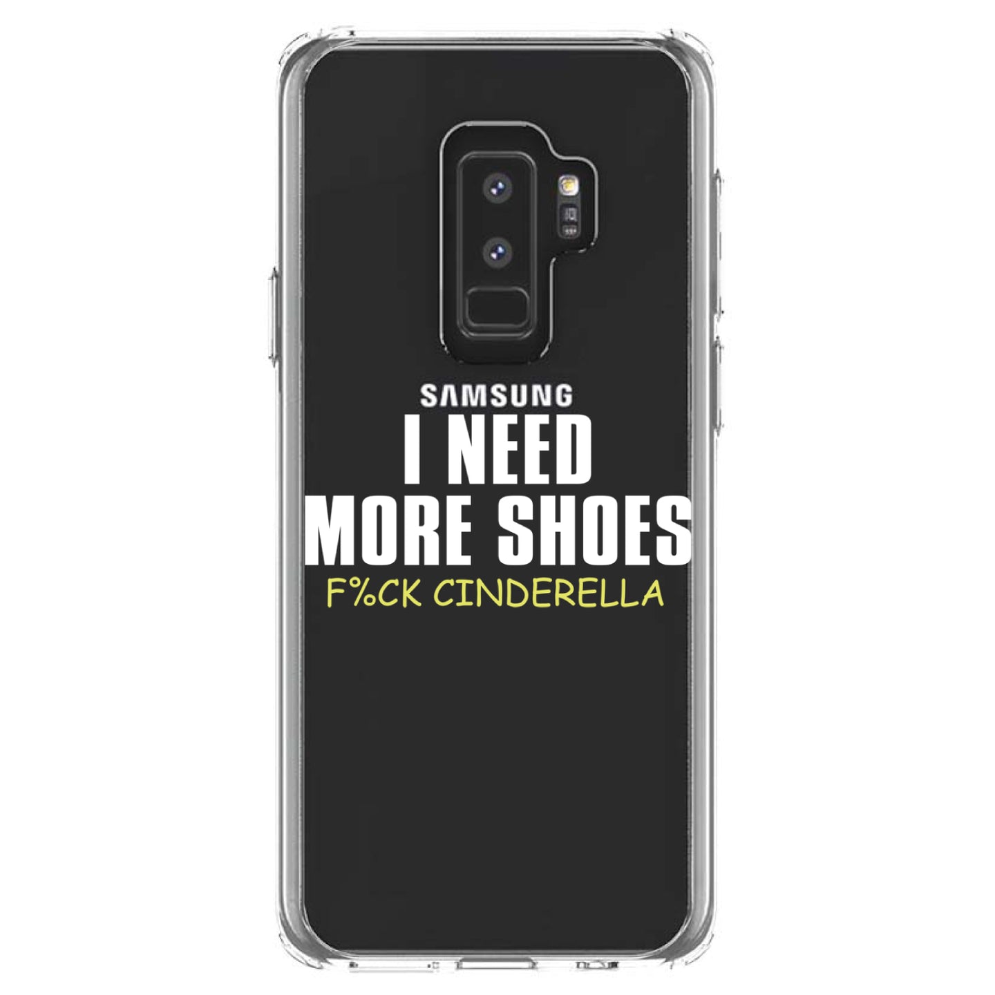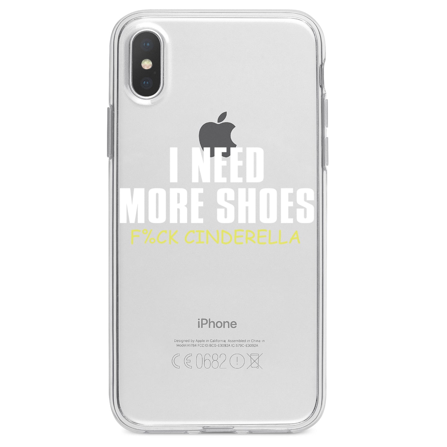 DistinctInk® Clear Shockproof Hybrid Case for Apple iPhone / Samsung Galaxy / Google Pixel - I Need More Shoes - F%ck Cinderella