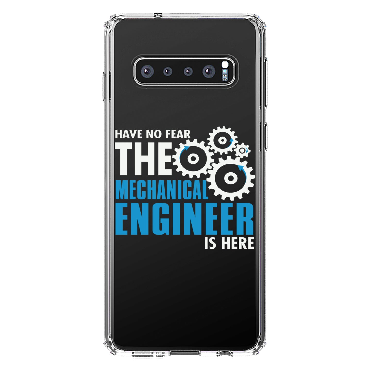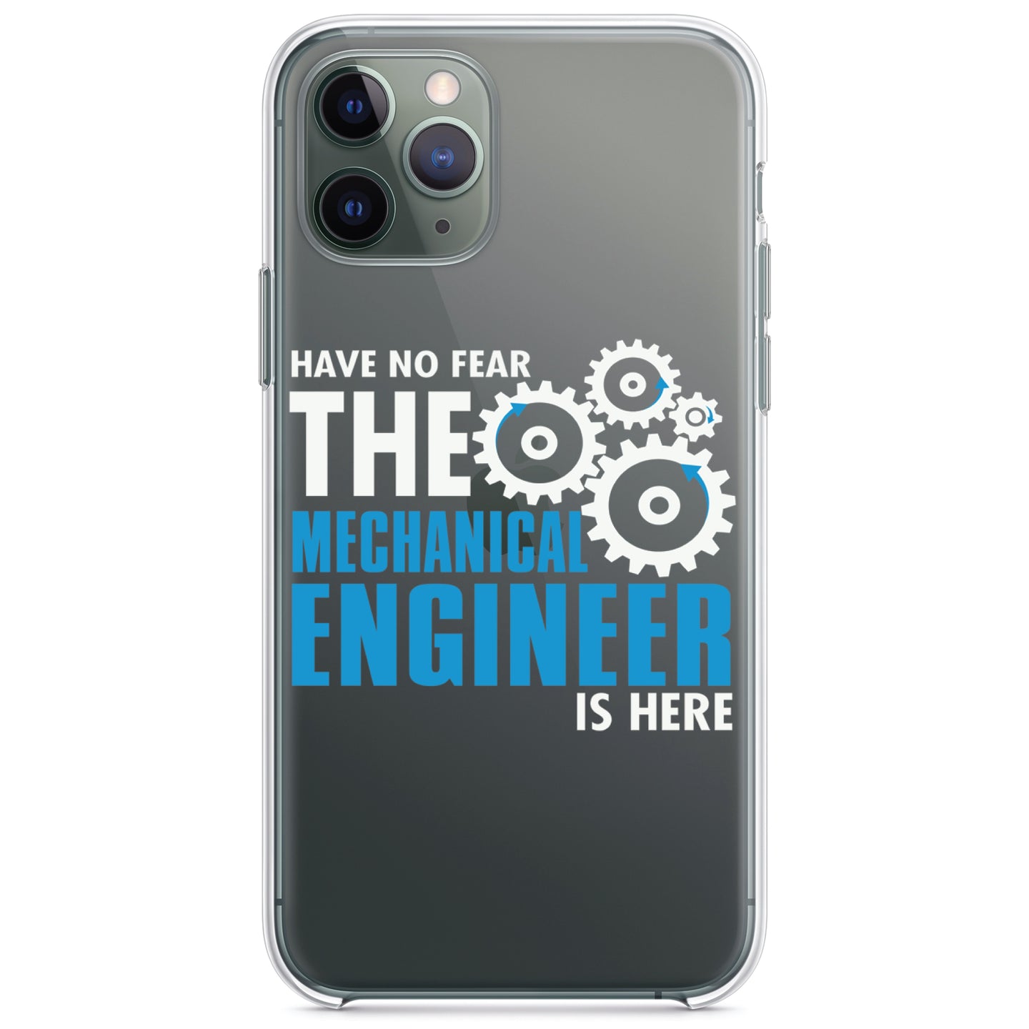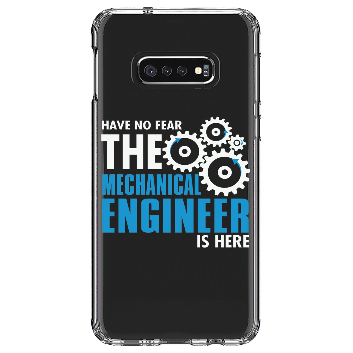 DistinctInk® Clear Shockproof Hybrid Case for Apple iPhone / Samsung Galaxy / Google Pixel - No Fear Mechanical Engineer is Here