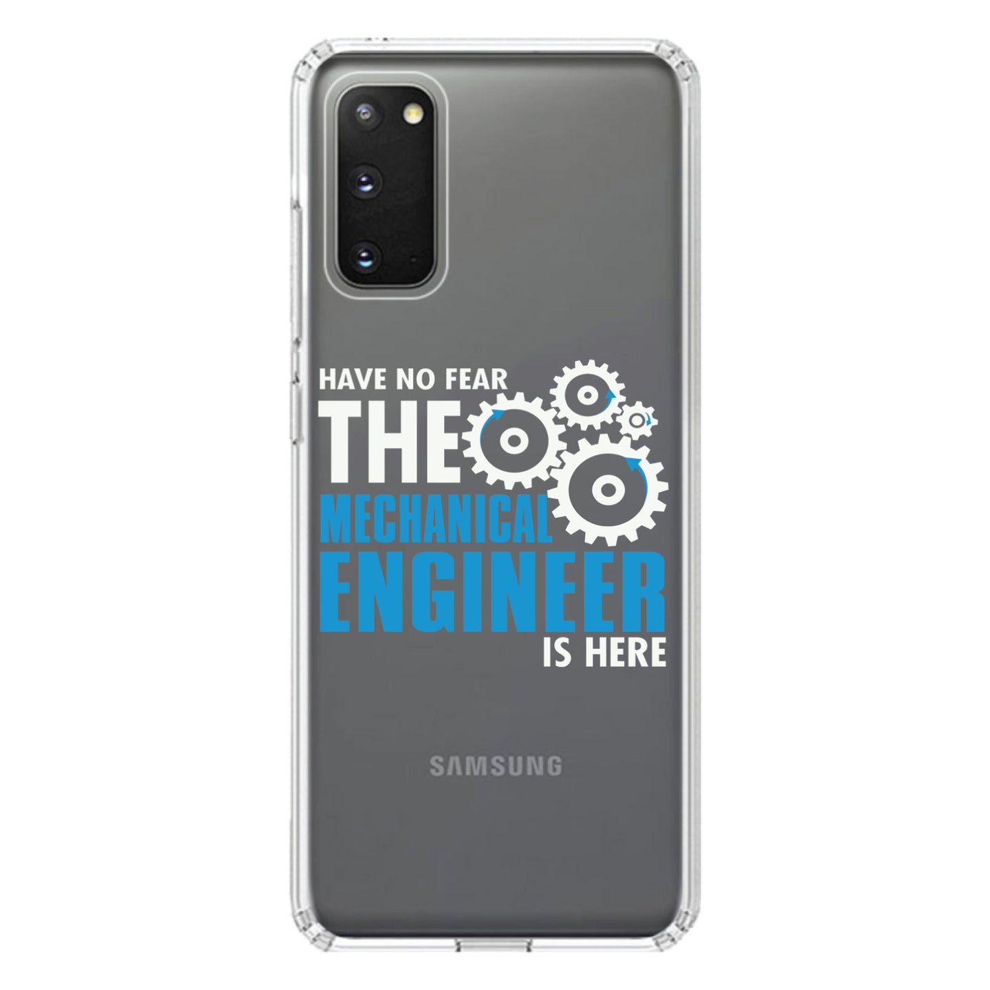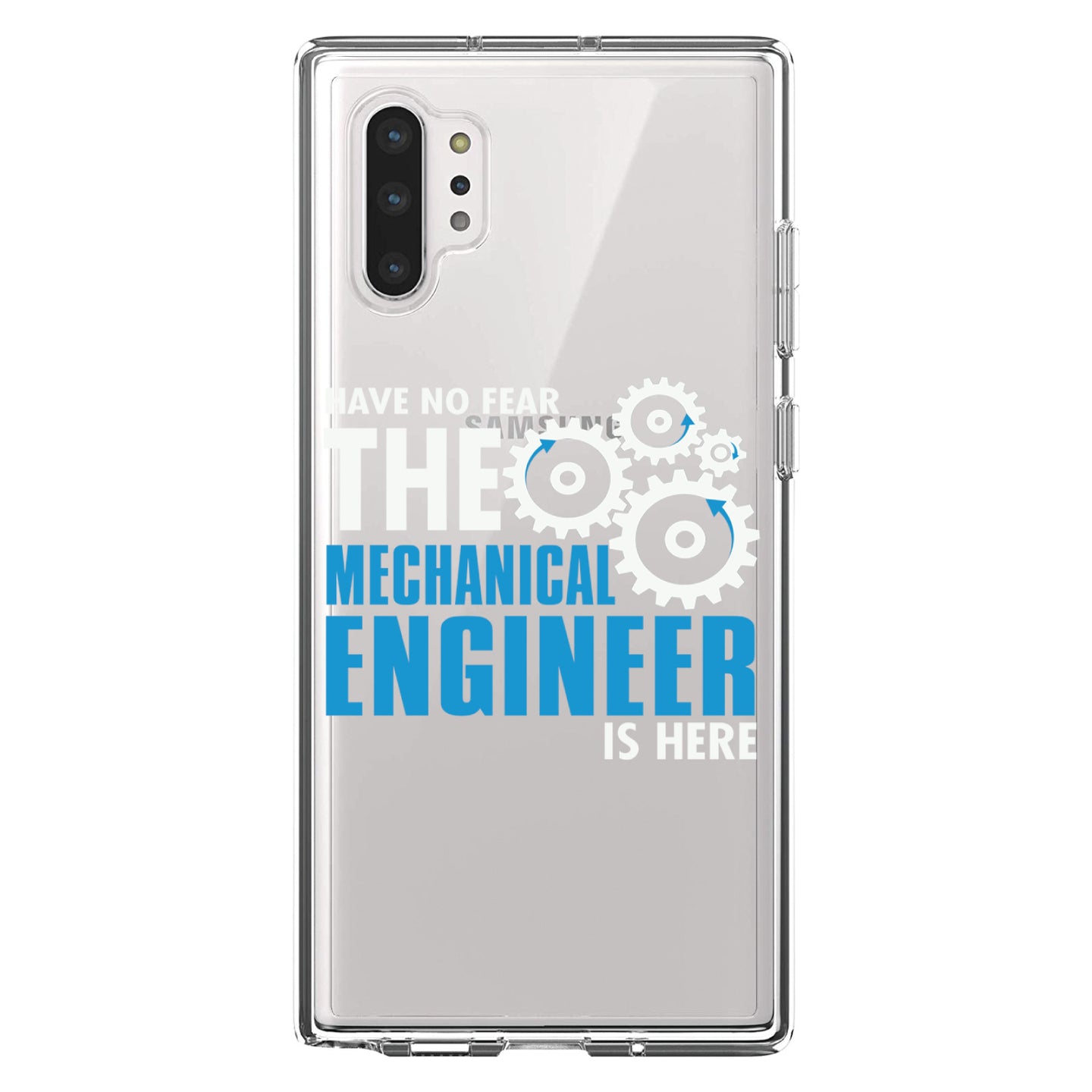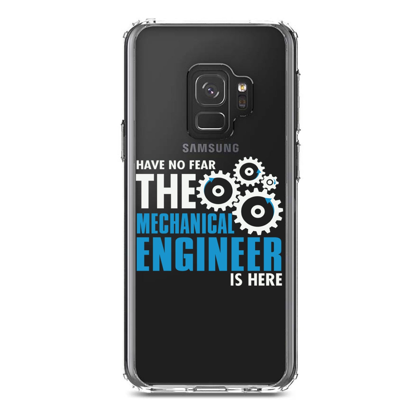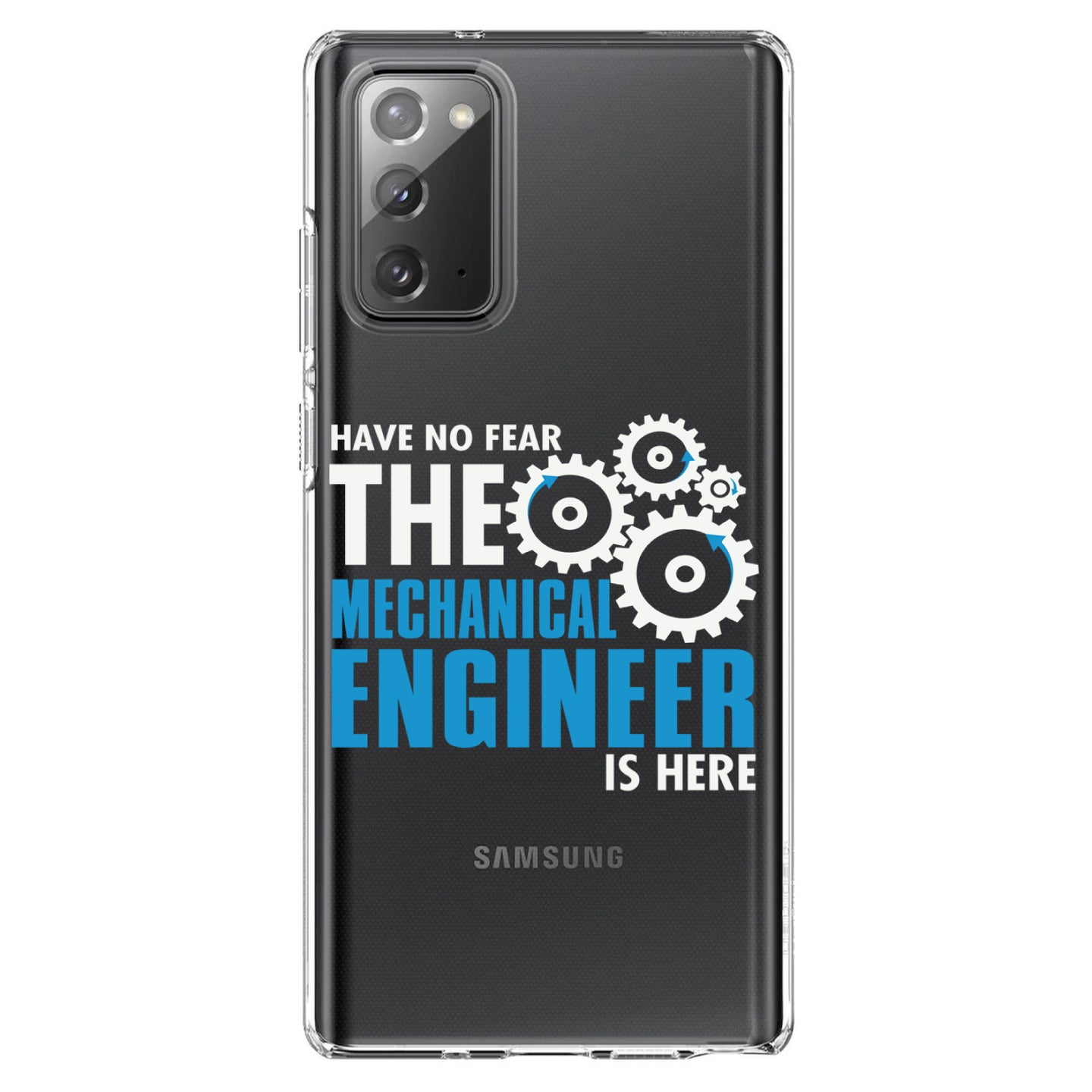 DistinctInk® Clear Shockproof Hybrid Case for Apple iPhone / Samsung Galaxy / Google Pixel - No Fear Mechanical Engineer is Here