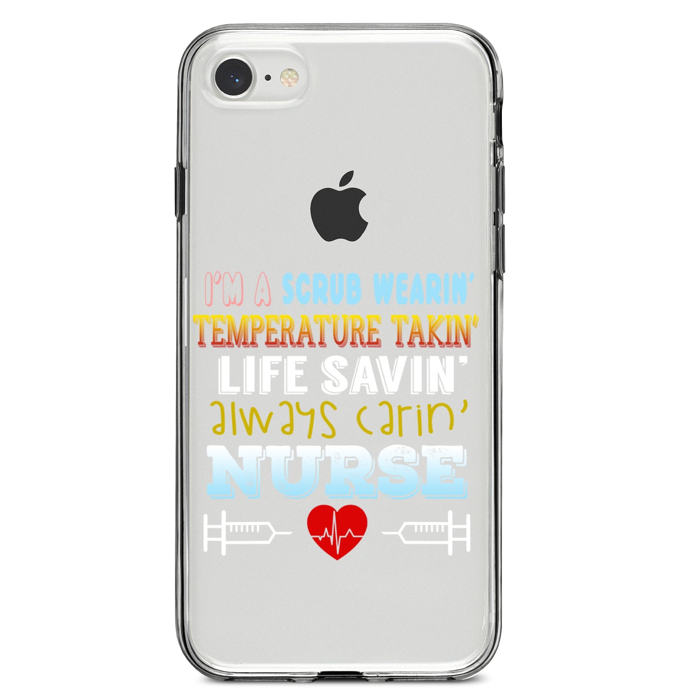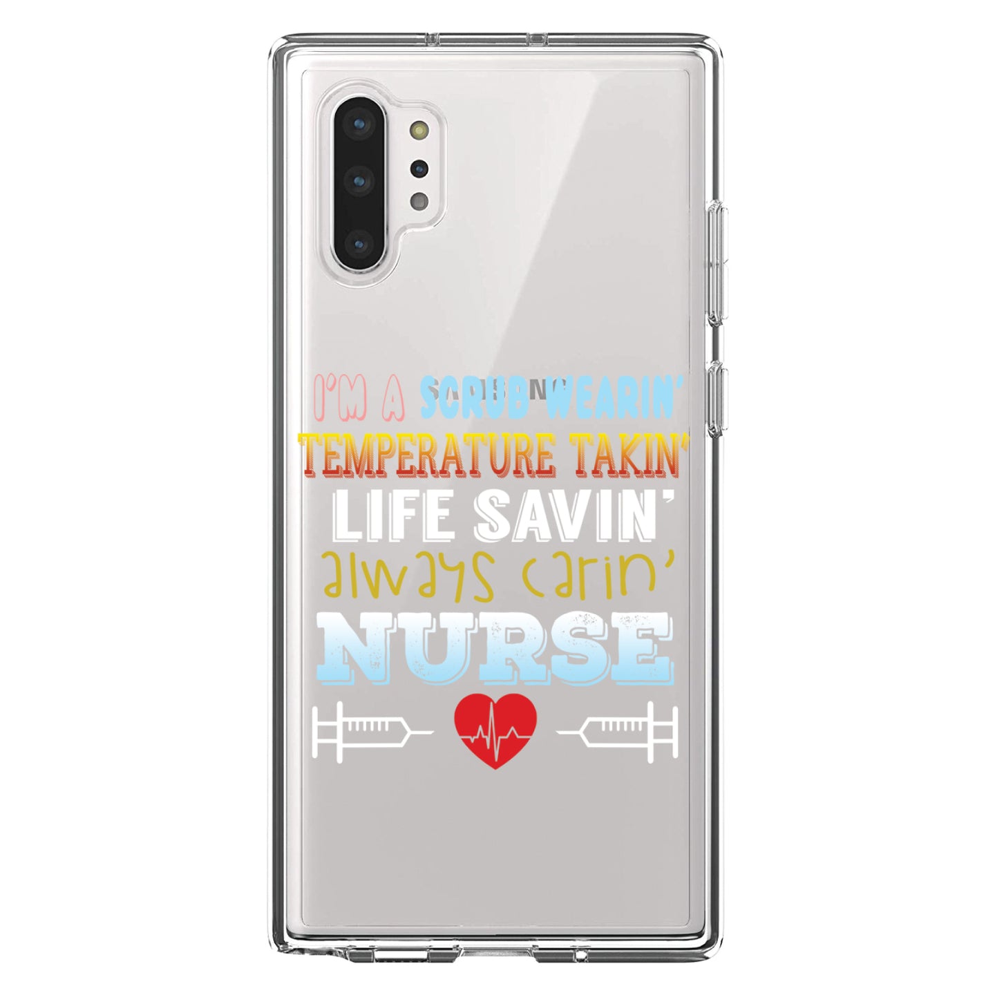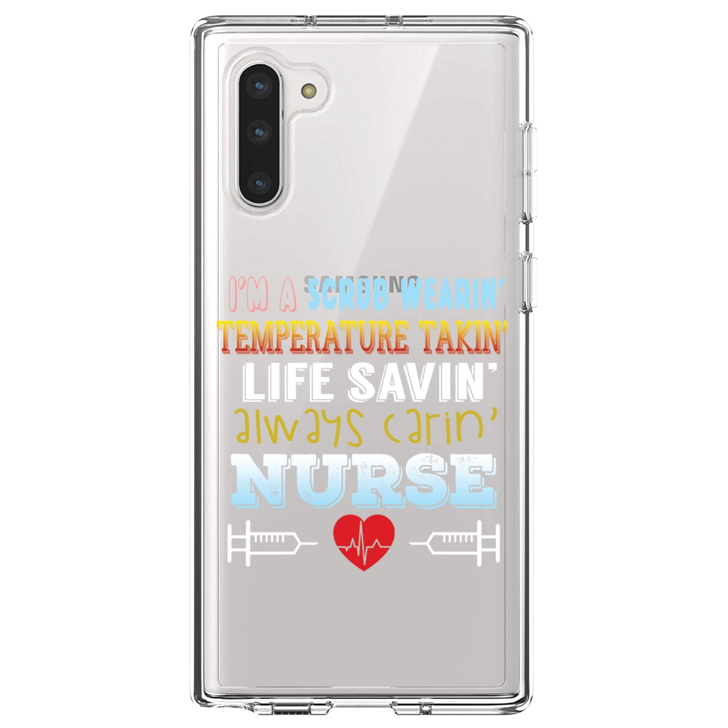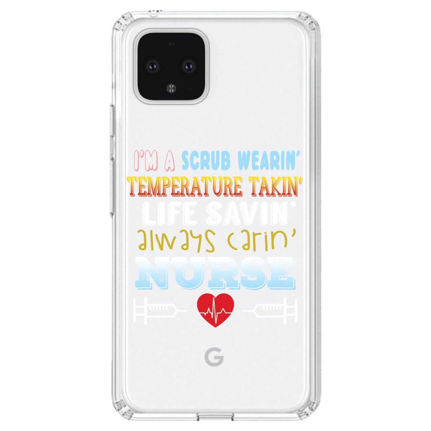 DistinctInk® Clear Shockproof Hybrid Case for Apple iPhone / Samsung Galaxy / Google Pixel - Scrub Wearing Temp Taking Life Saving Nurse