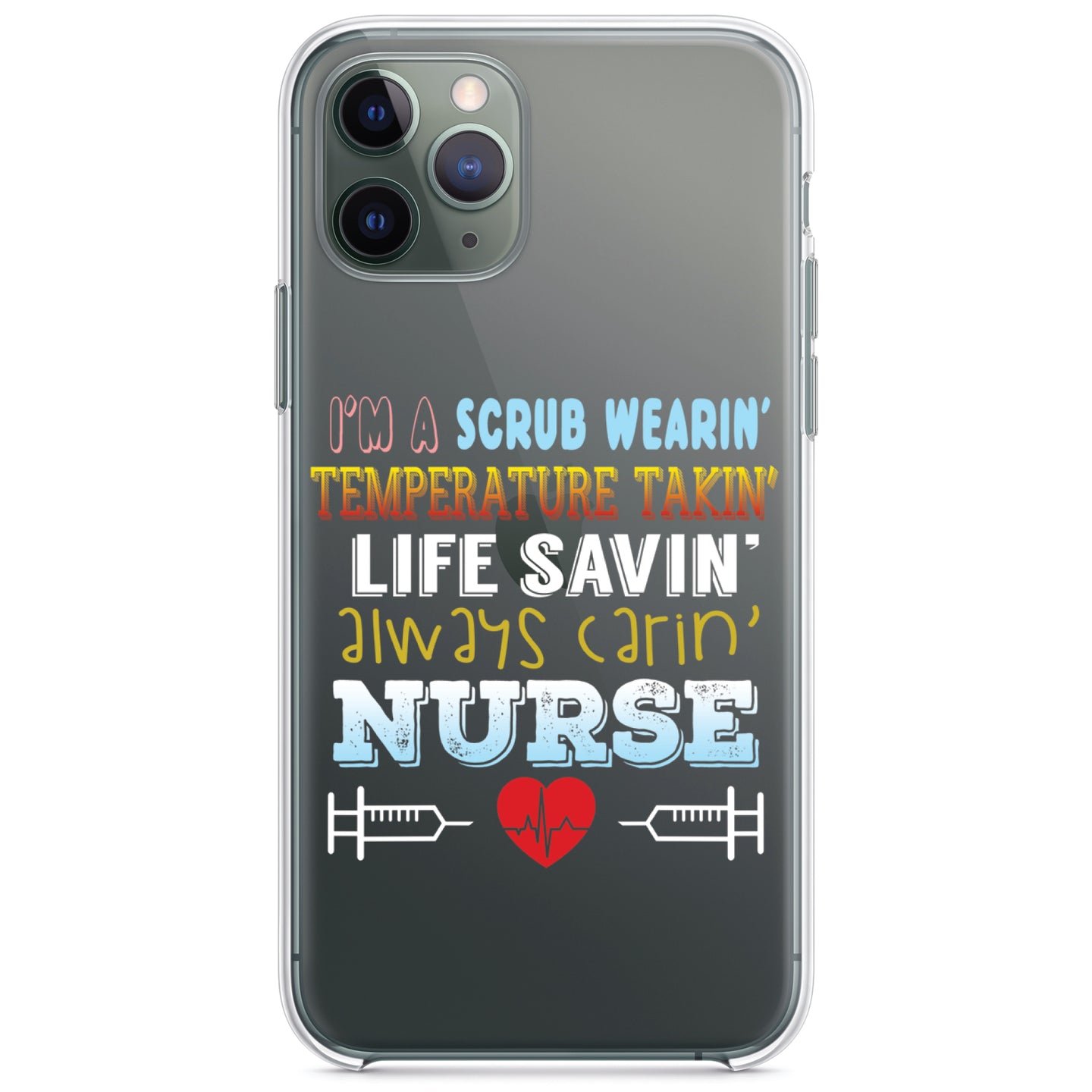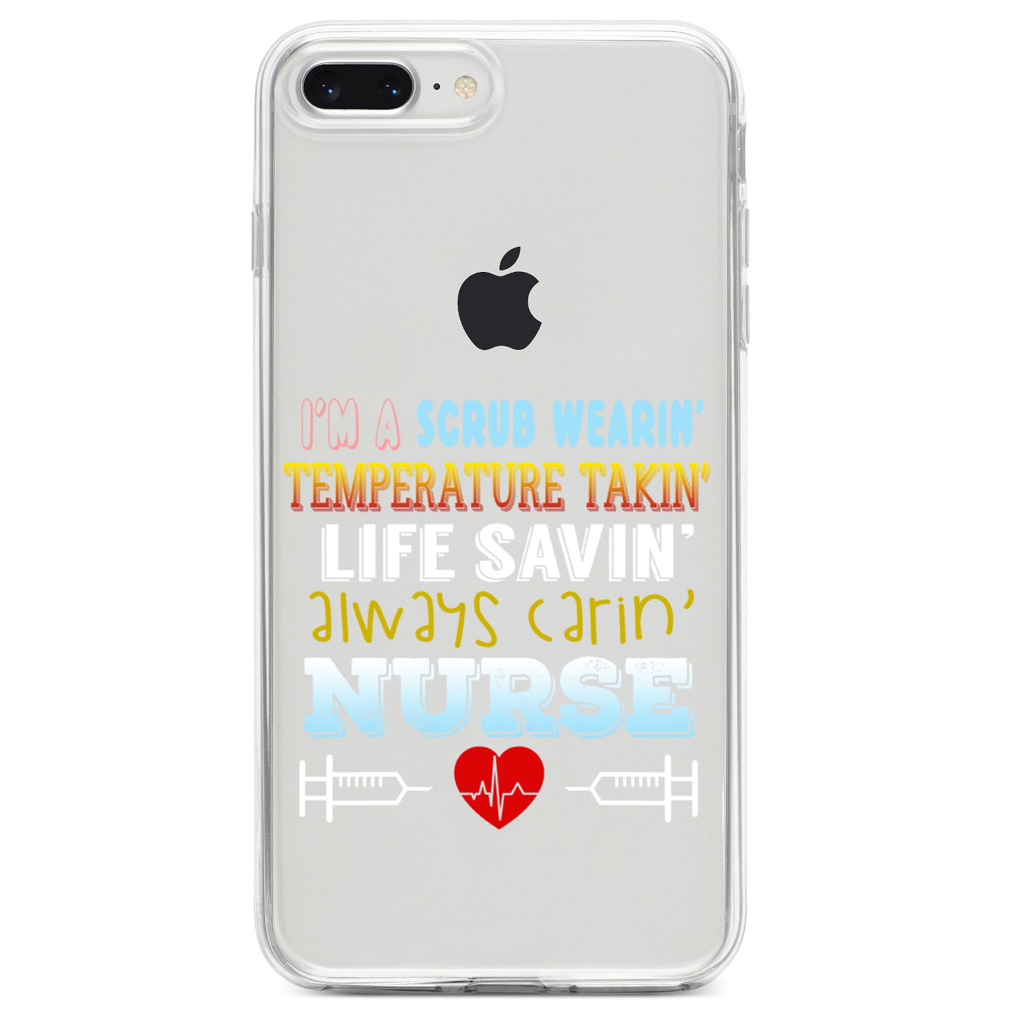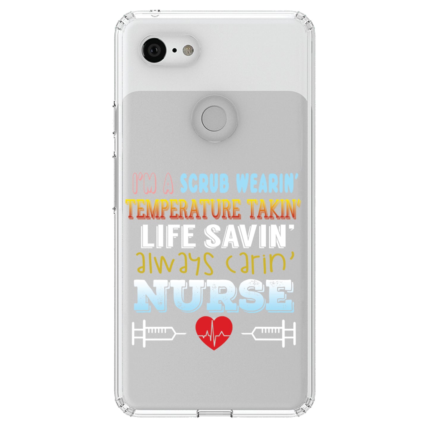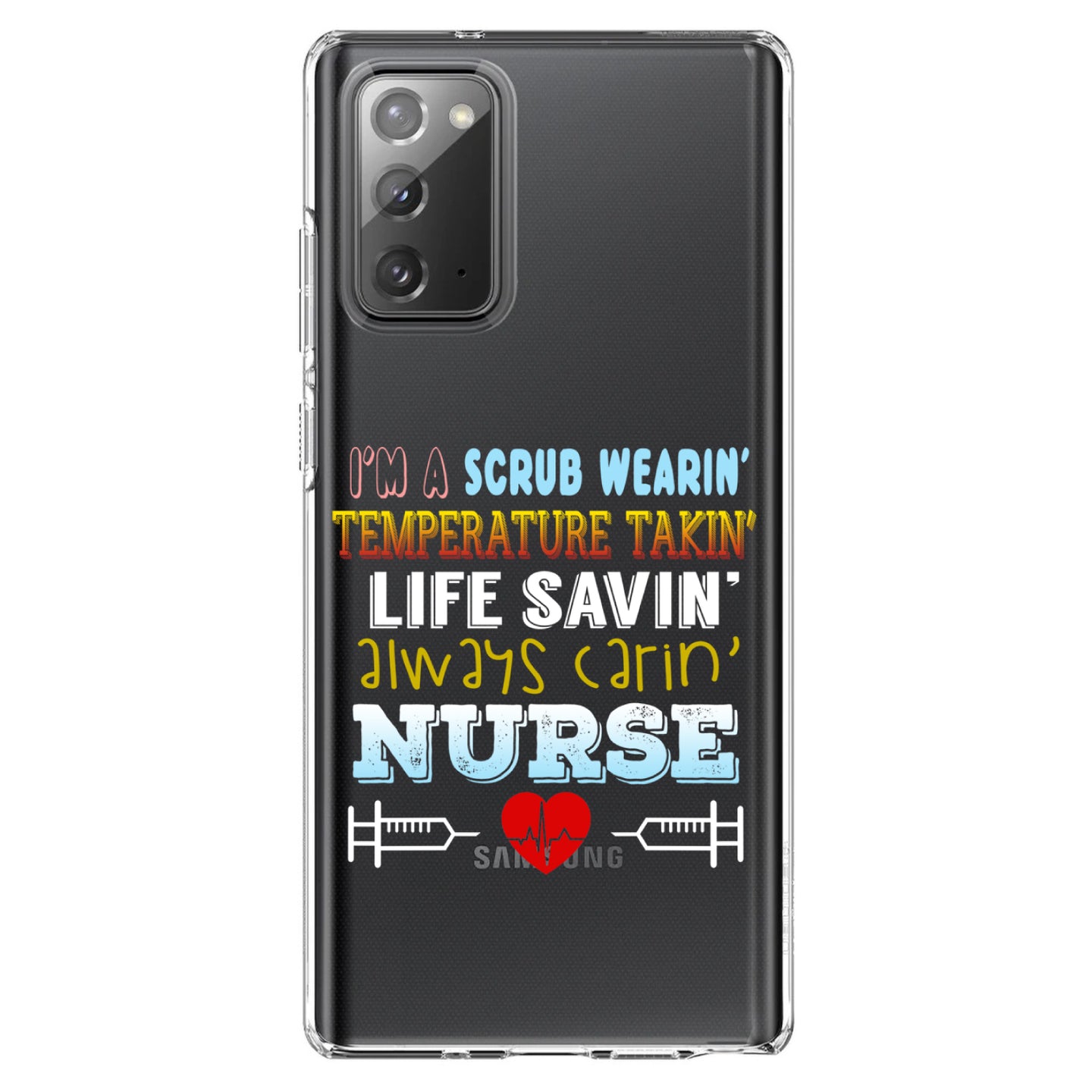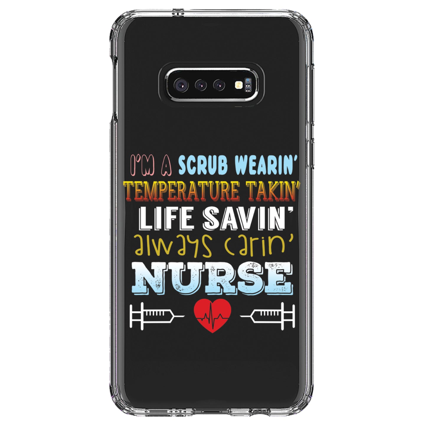 DistinctInk® Clear Shockproof Hybrid Case for Apple iPhone / Samsung Galaxy / Google Pixel - Scrub Wearing Temp Taking Life Saving Nurse