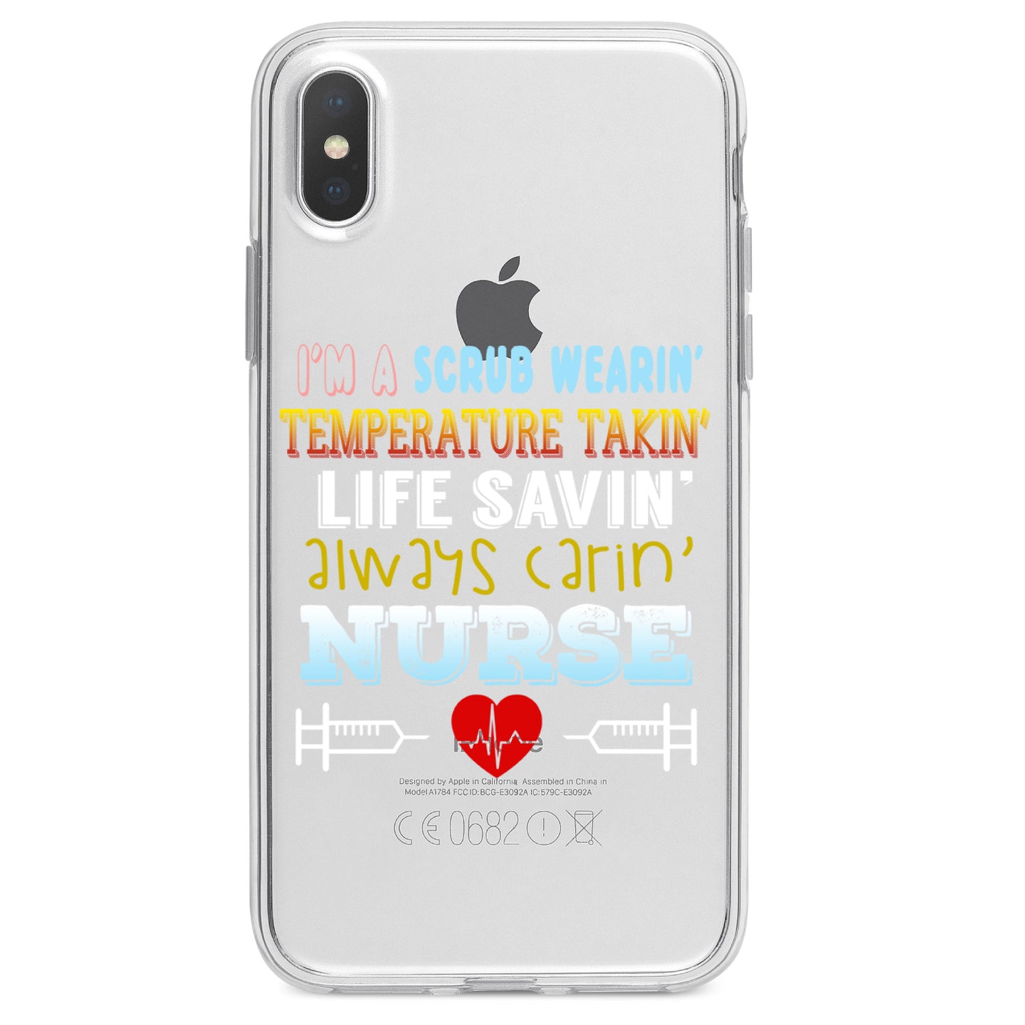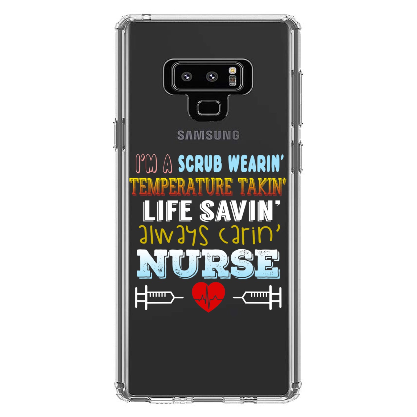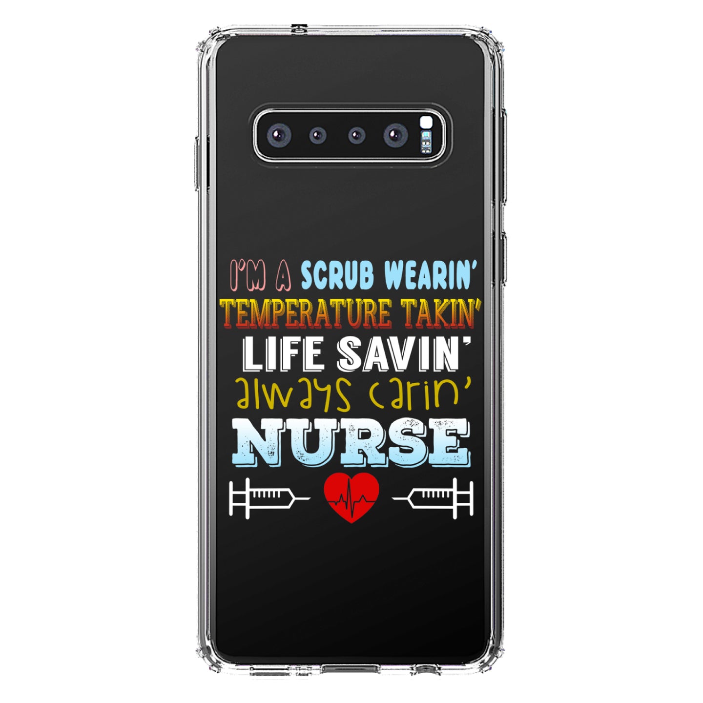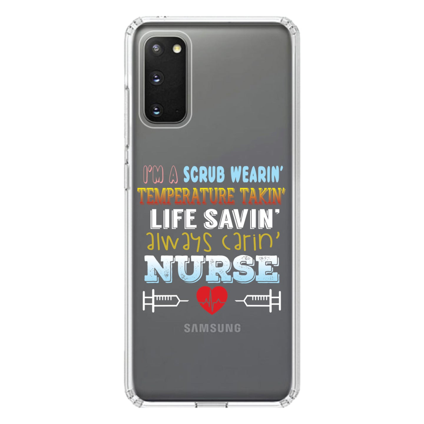 DistinctInk® Clear Shockproof Hybrid Case for Apple iPhone / Samsung Galaxy / Google Pixel - Scrub Wearing Temp Taking Life Saving Nurse