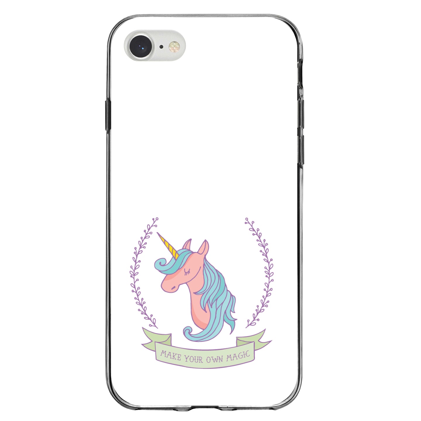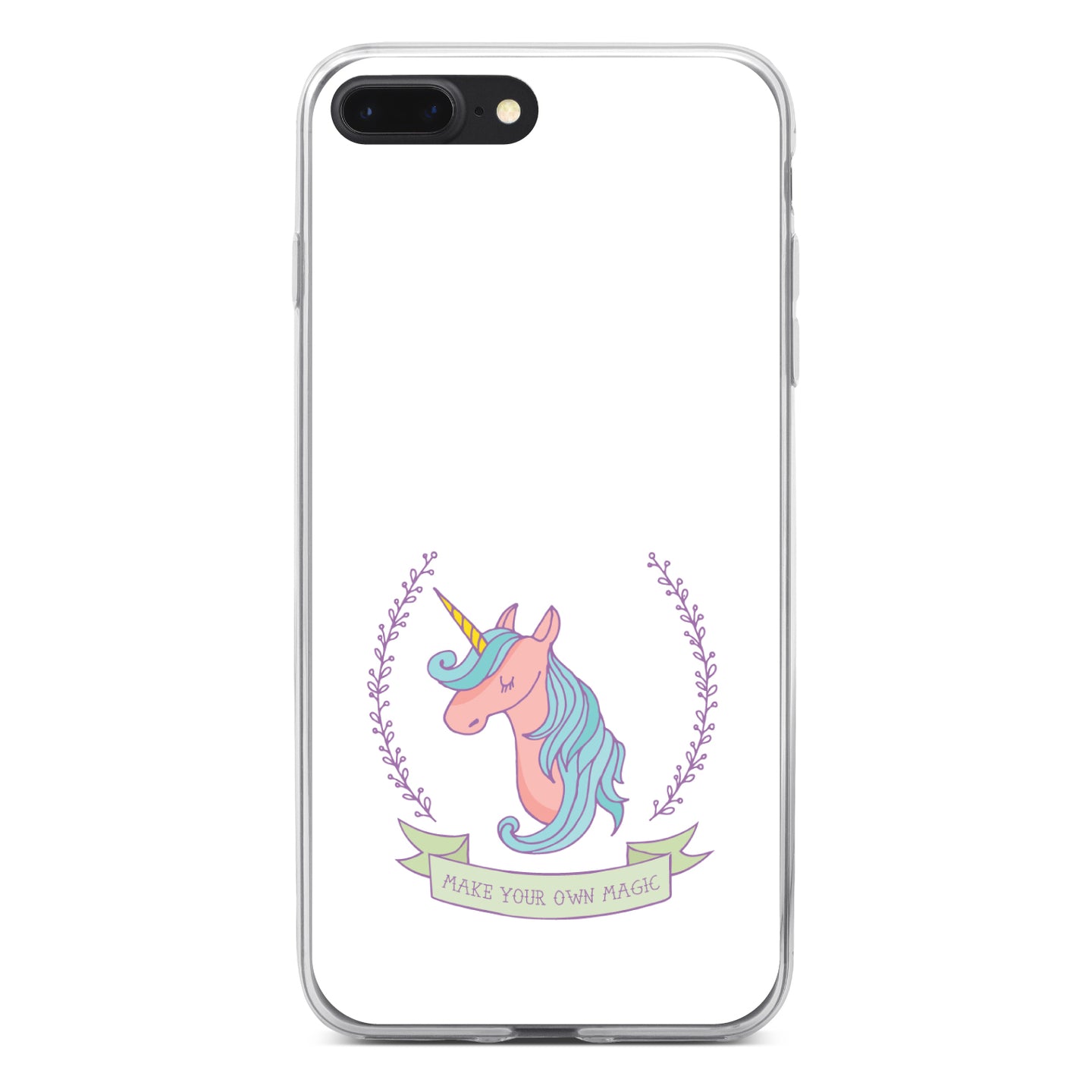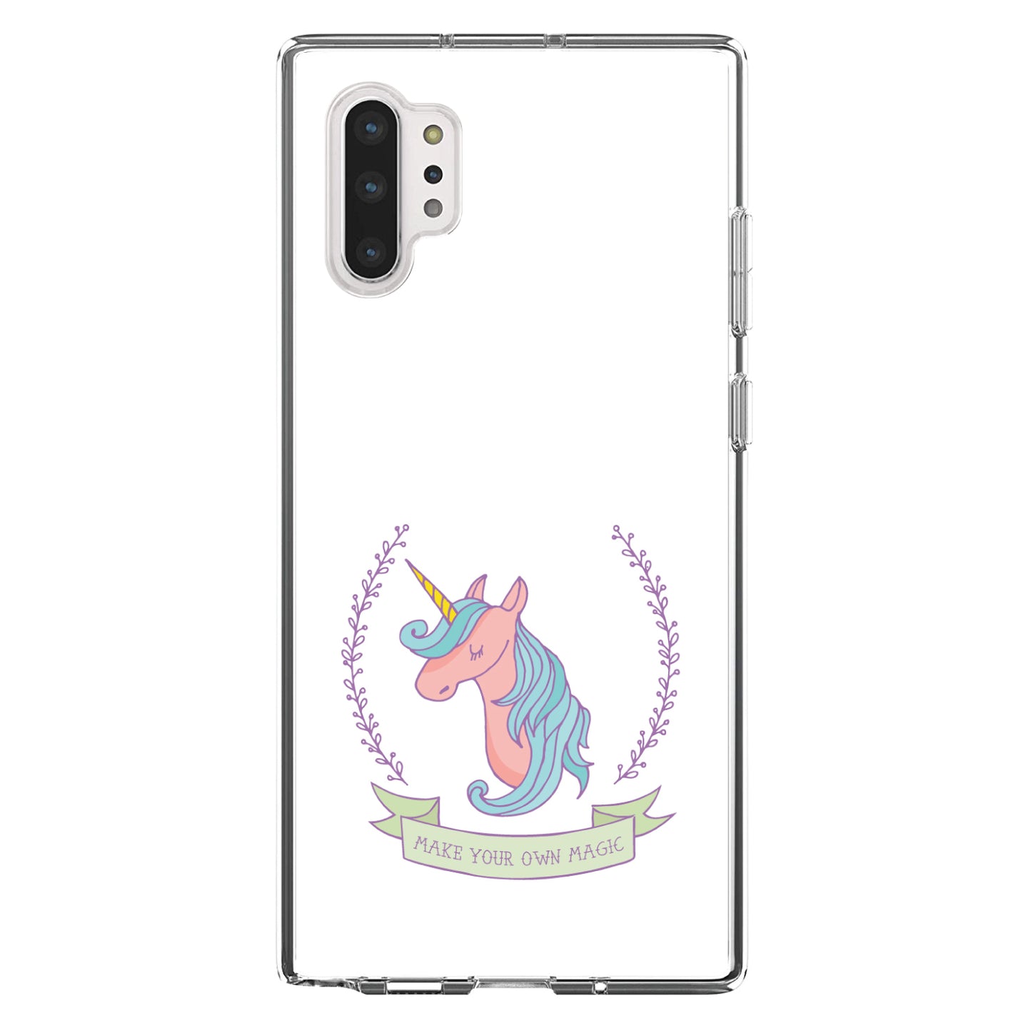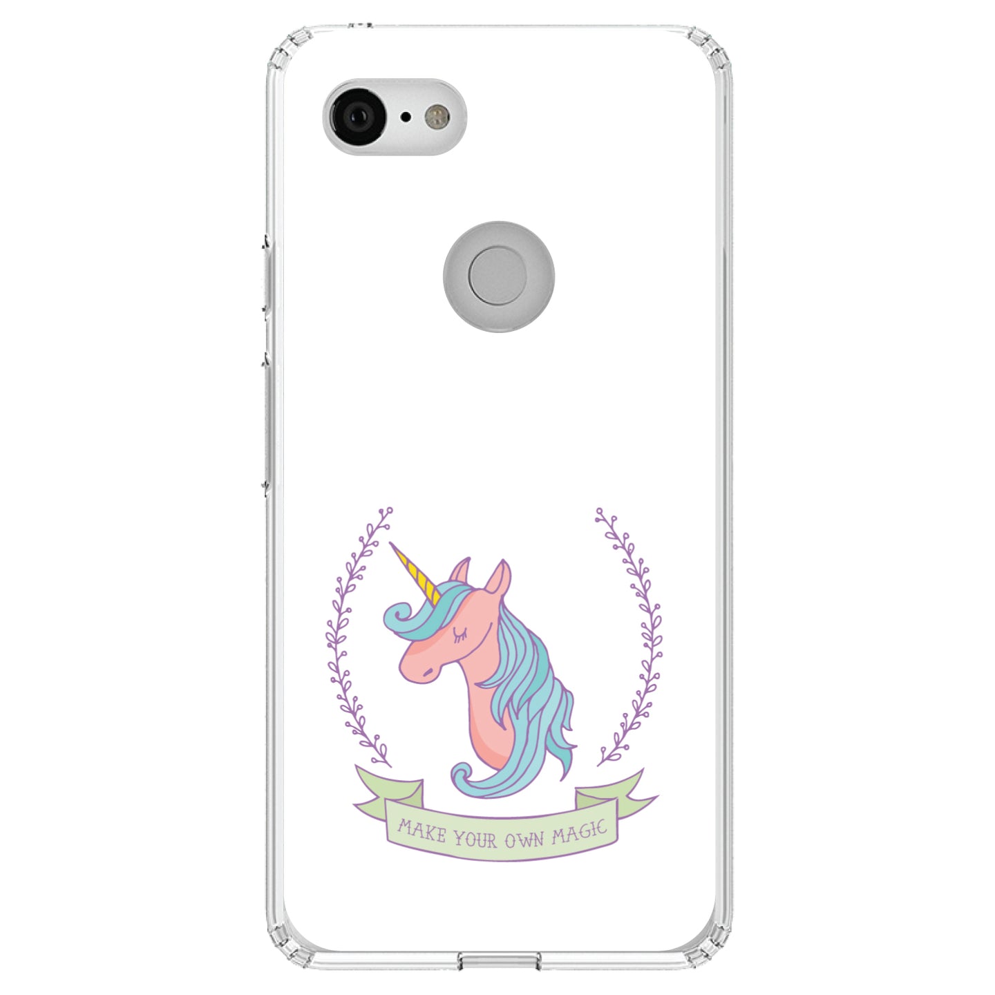 DistinctInk® Clear Shockproof Hybrid Case for Apple iPhone / Samsung Galaxy / Google Pixel - Unicorn - Make Your Own Magic - White
