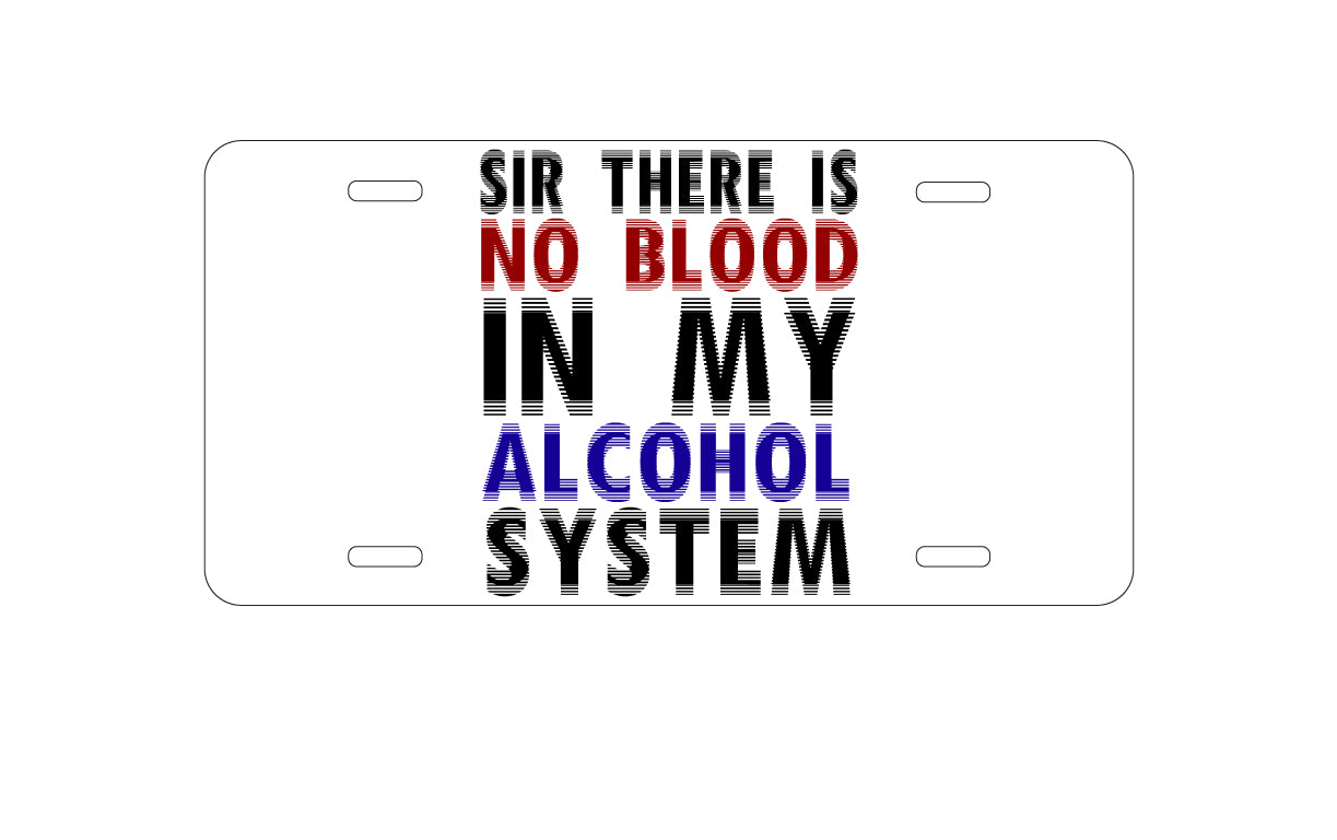 DistinctInk Custom Aluminum Decorative Vanity Front License Plate - Sir There is Blood in My Alcohol System