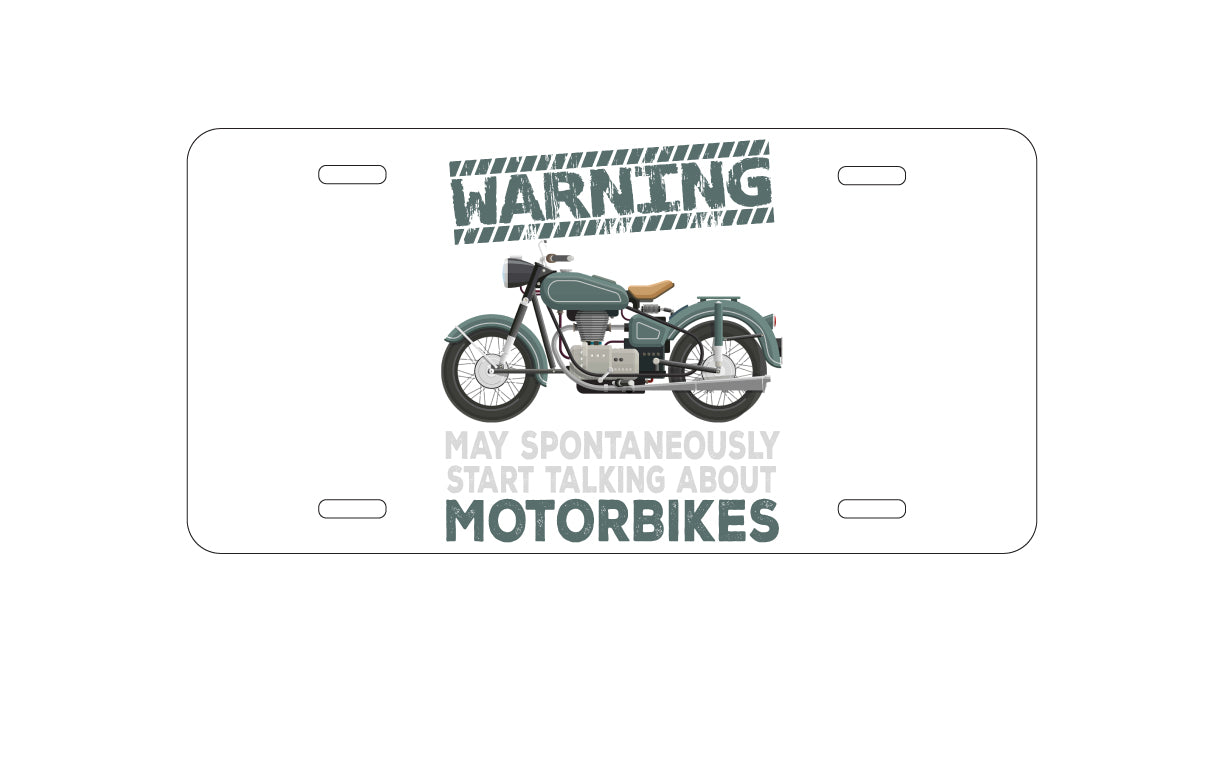 DistinctInk Custom Aluminum Decorative Vanity Front License Plate - Spontaneously Talking About Motorcycles