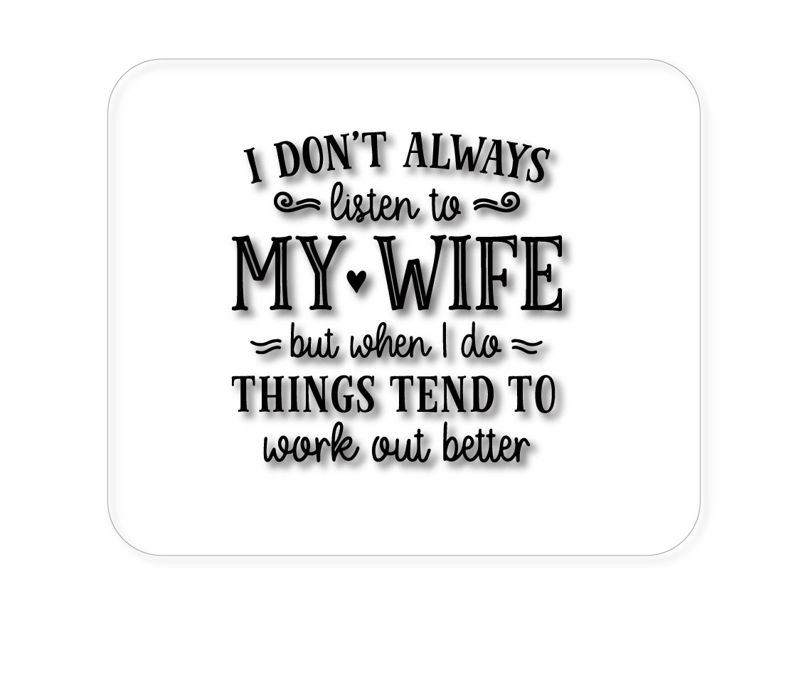 DistinctInk Custom Foam Rubber Mouse Pad - 1/4" Thick - Don't Always Listen to my Wife, But Work Out Better