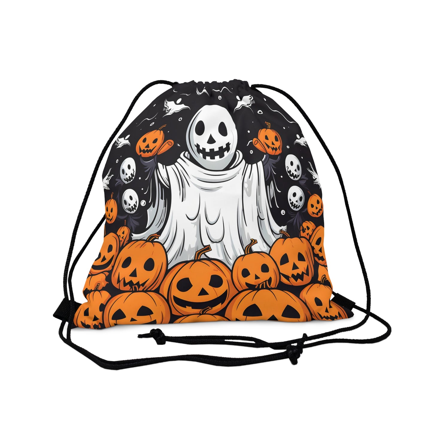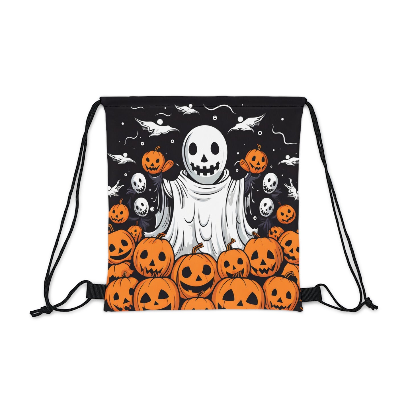 Sneak around with this spooktacular drawstring bag! Perfect for your 'ghouls' night out. The all-over Ghost Skeleton Pumpkins design on the polyester broadcloth will scare any 'boo' away that you pass. Perfect for any 'spirit'. Comes with adjustable drawstring straps for easy placement and comfortable carry. #FrightfulFun #SpookyTravel #KookyCarryAll #GhoulishBag #NightOutEssentuals #CoolCreepy #CreepyCarry #GhostDesign #BloodyBackpack #ScarySkeleton #PumpkinPouch
