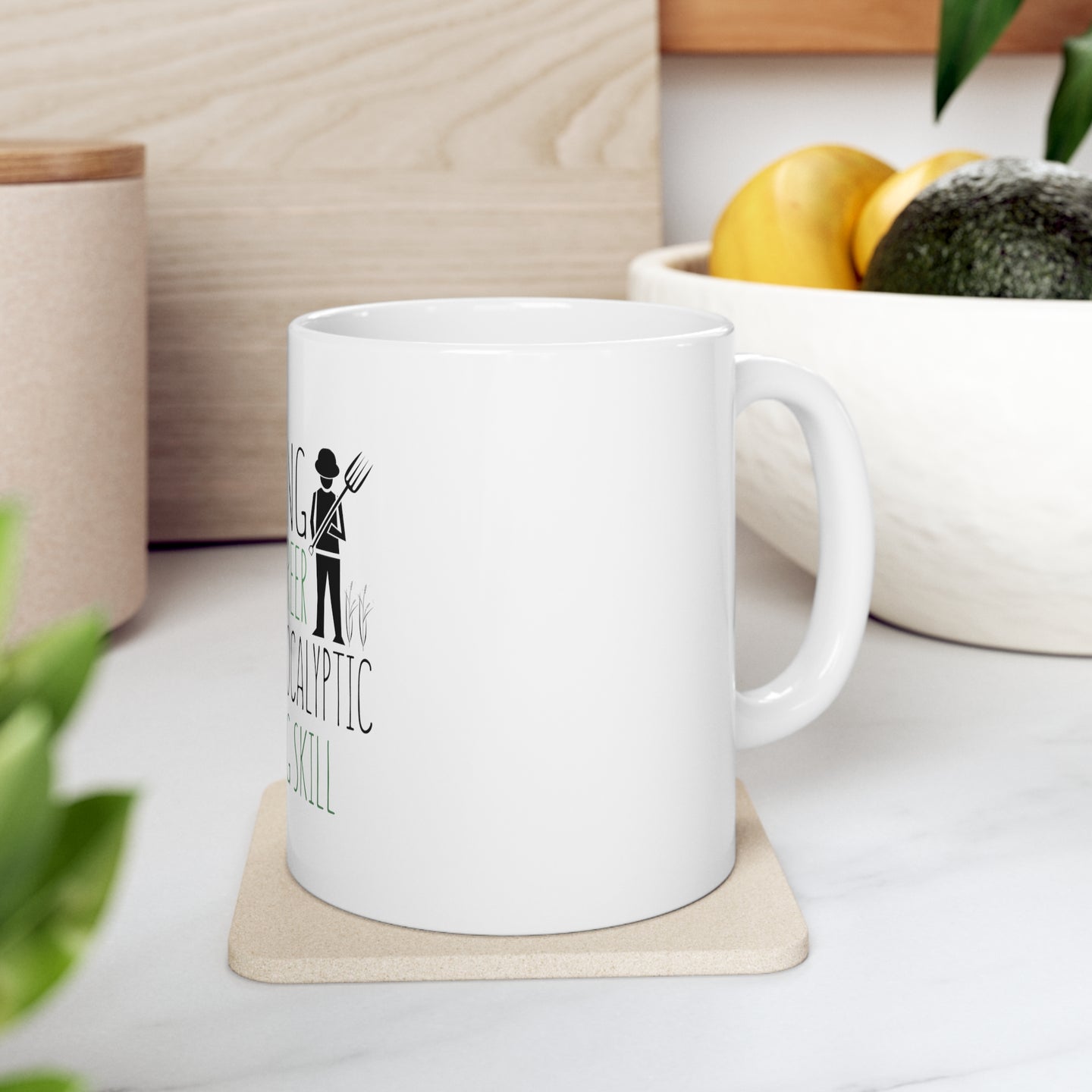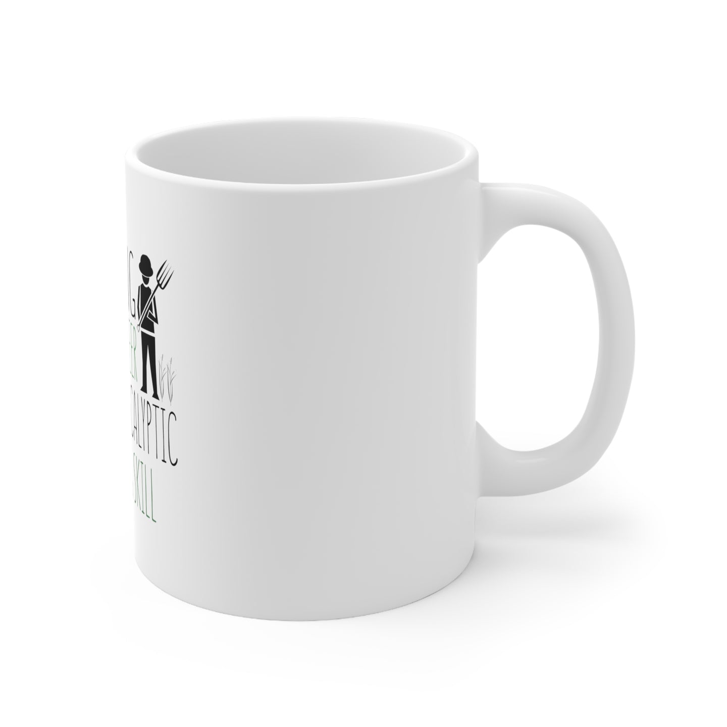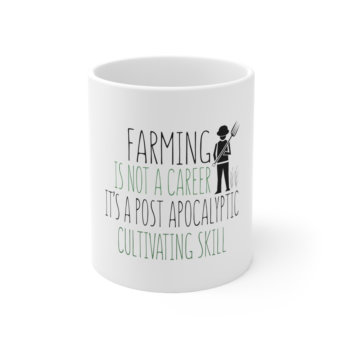 This sturdy mug is perfect for your morning coffee, afternoon tea, or whatever hot beverage you enjoy. It's glossy white with a vivid print of our Farming is Not a Career Post Apocalyptic Skill desigh which will retain its quality when dish-washed and microwaved.