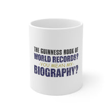This coffee mug is perfect for the person in your life who loves setting records! The Guinness Book Of Records - My Biography design printed directly on the mug is guaranteed to make them smile every time they take a sip. The high quality, glossy white finish is both eye-catching and durable.
