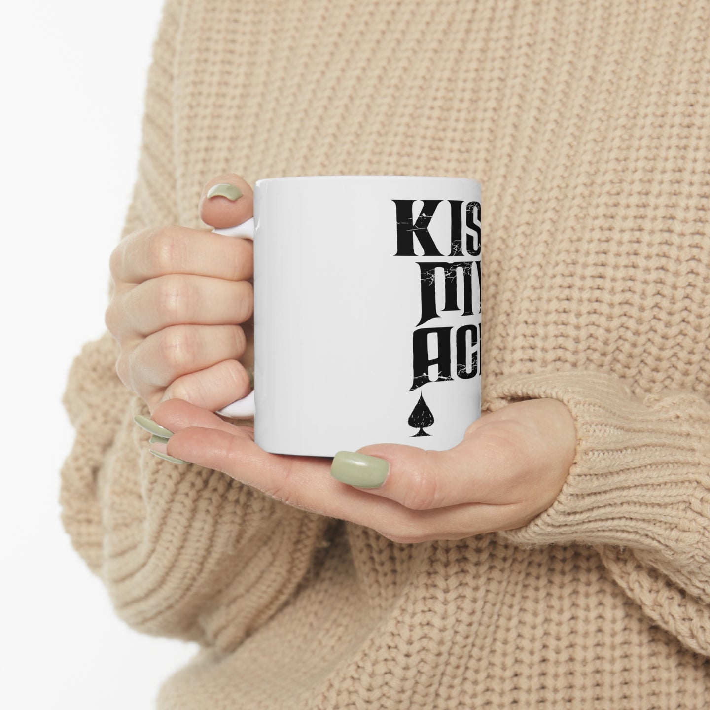 DistinctInk Glossy White Coffee / Tea Mug - Kiss My ACE - Poker Blackjack Gambling