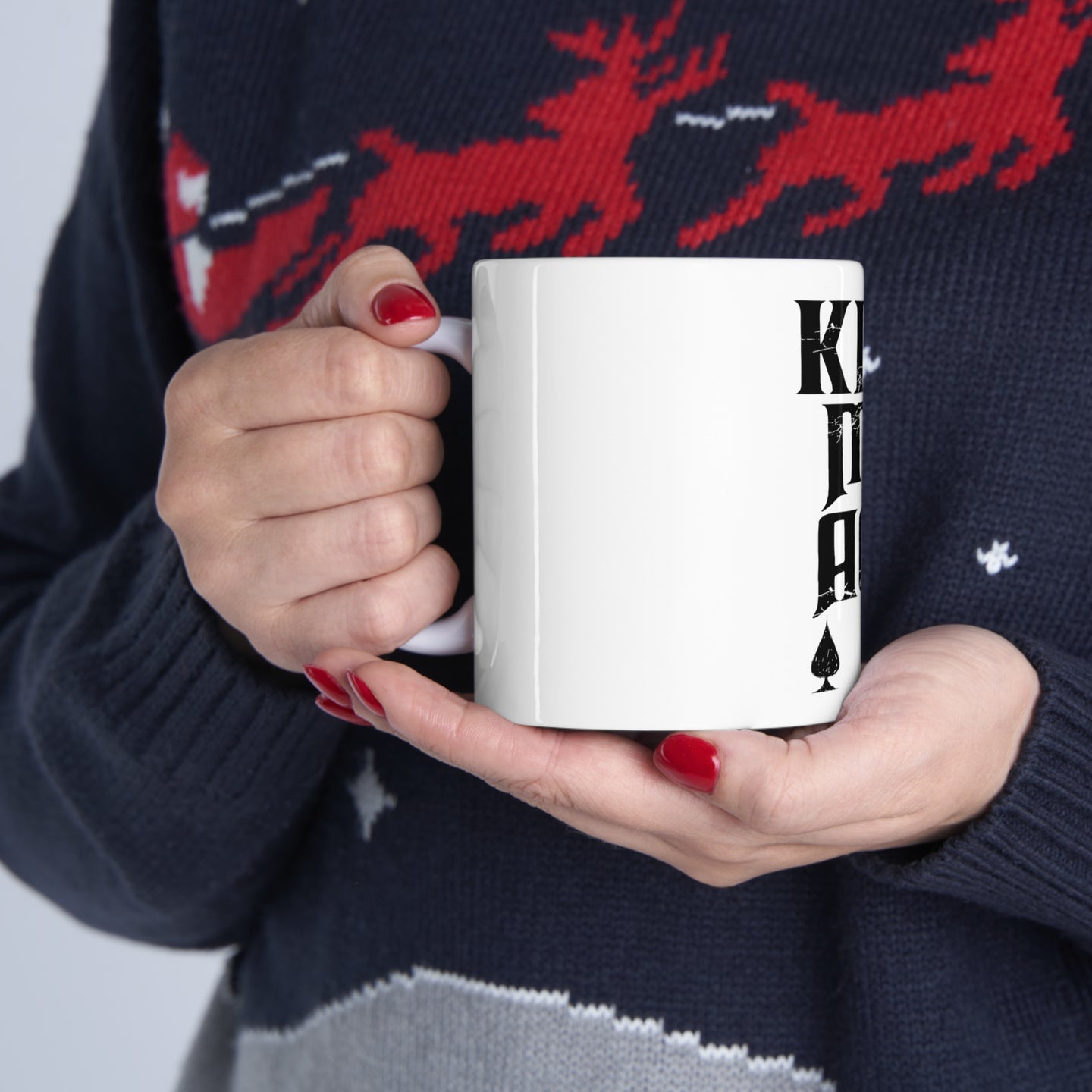 This sturdy mug is perfect for your morning coffee, afternoon tea, or whatever hot beverage you enjoy. It's glossy white with a vivid print of our Kiss My ACE - Poker Blackjack Gambling desigh which will retain its quality when dish-washed and microwaved.