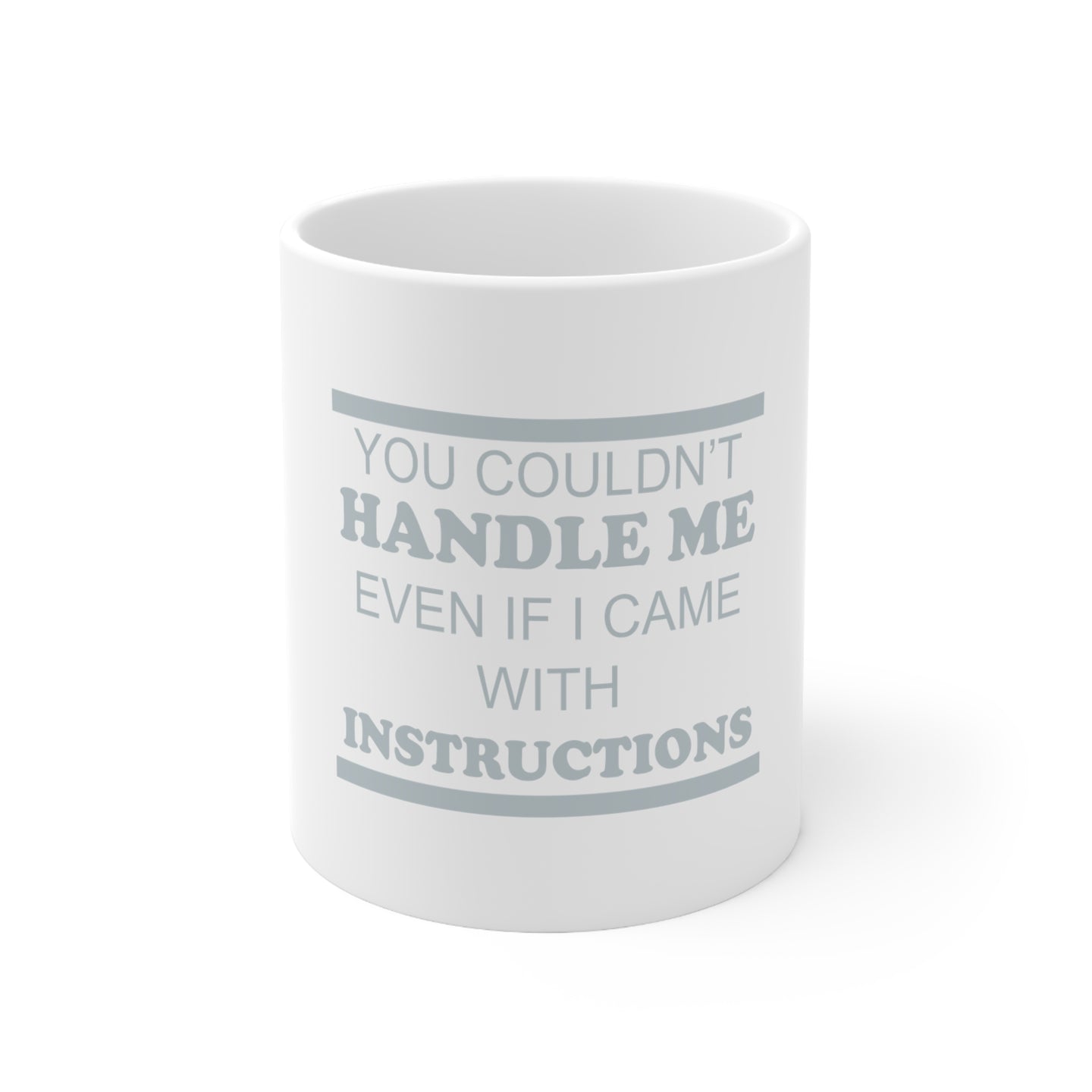 This sturdy mug is perfect for your morning coffee, afternoon tea, or whatever hot beverage you enjoy. It's glossy white with a vivid print of our You Couldn't Handle Me If I Came With Instructions desigh which will retain its quality when dish-washed and microwaved.