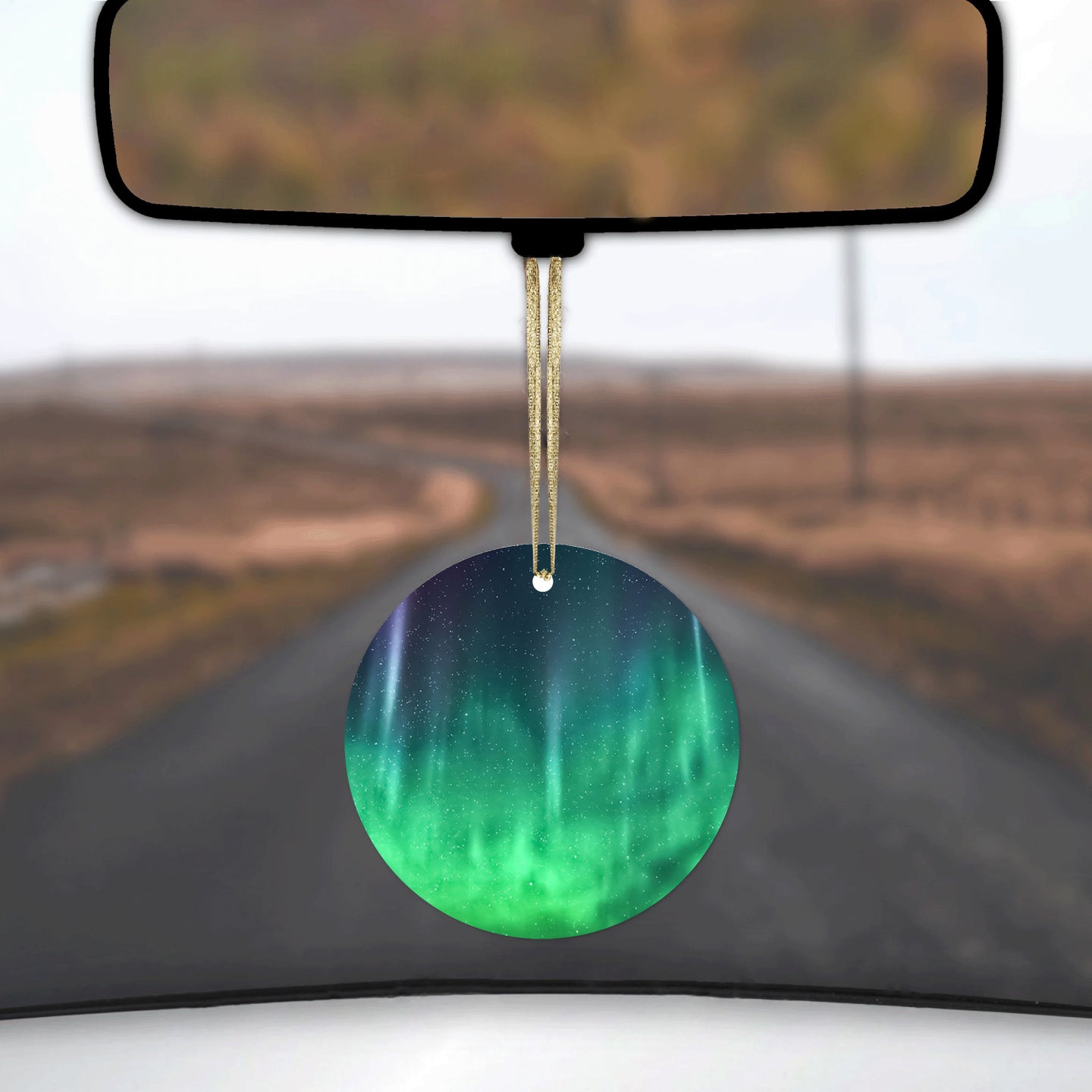 DistinctInk® Hanging Ceramic Christmas Tree Ornament with Gold String - Great Gift / Present - 2 3/4 inch Diameter - Aurora Borealis Northern Lights