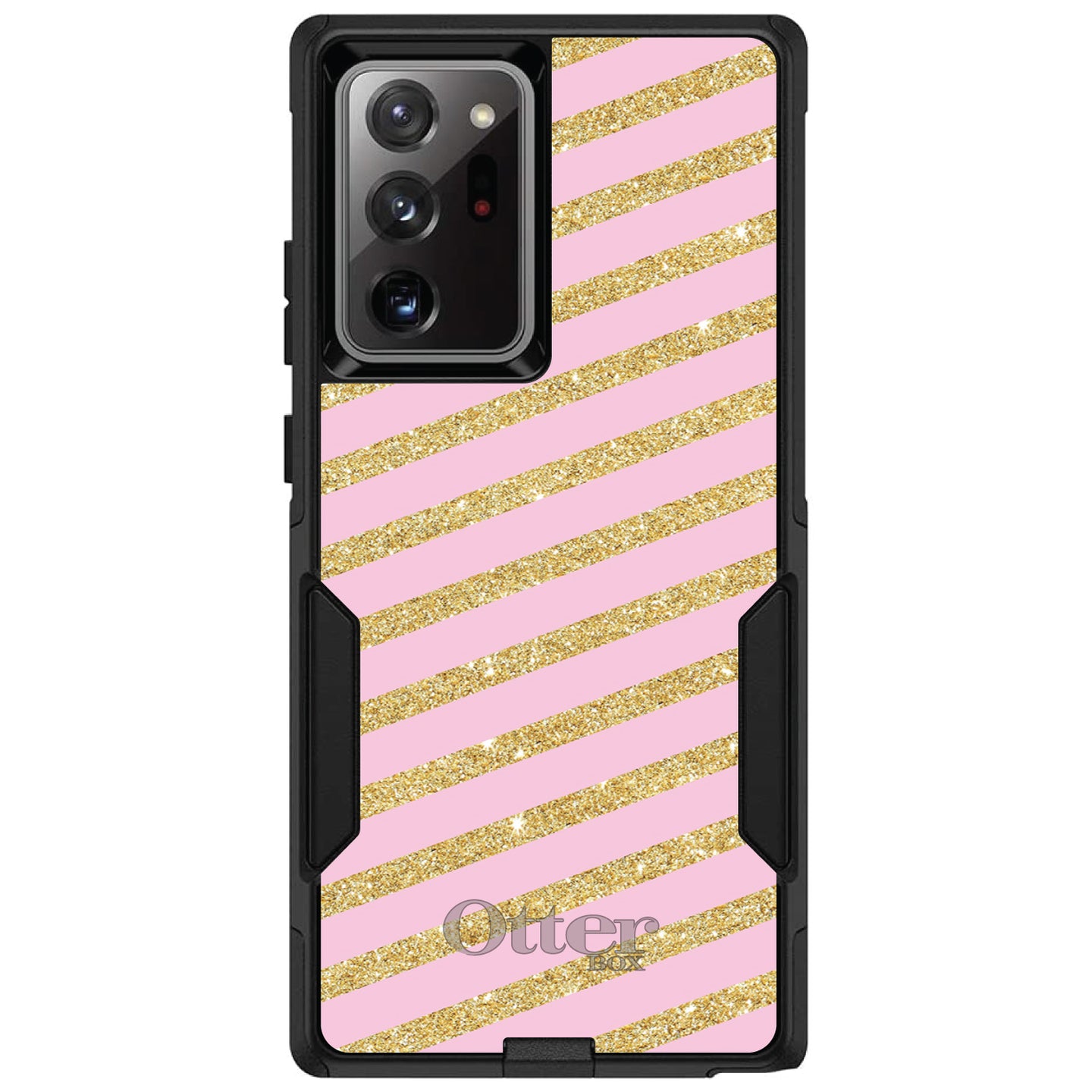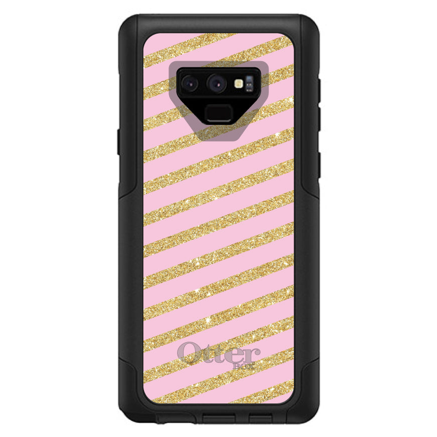 DistinctInk OtterBox Commuter Series Case for Apple iPhone or Samsung Galaxy - Pink & Gold Print - Diagonal Stripes Pattern
