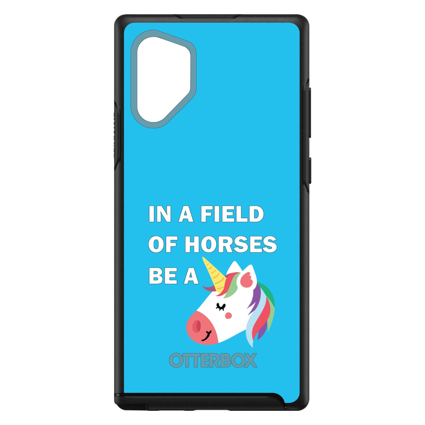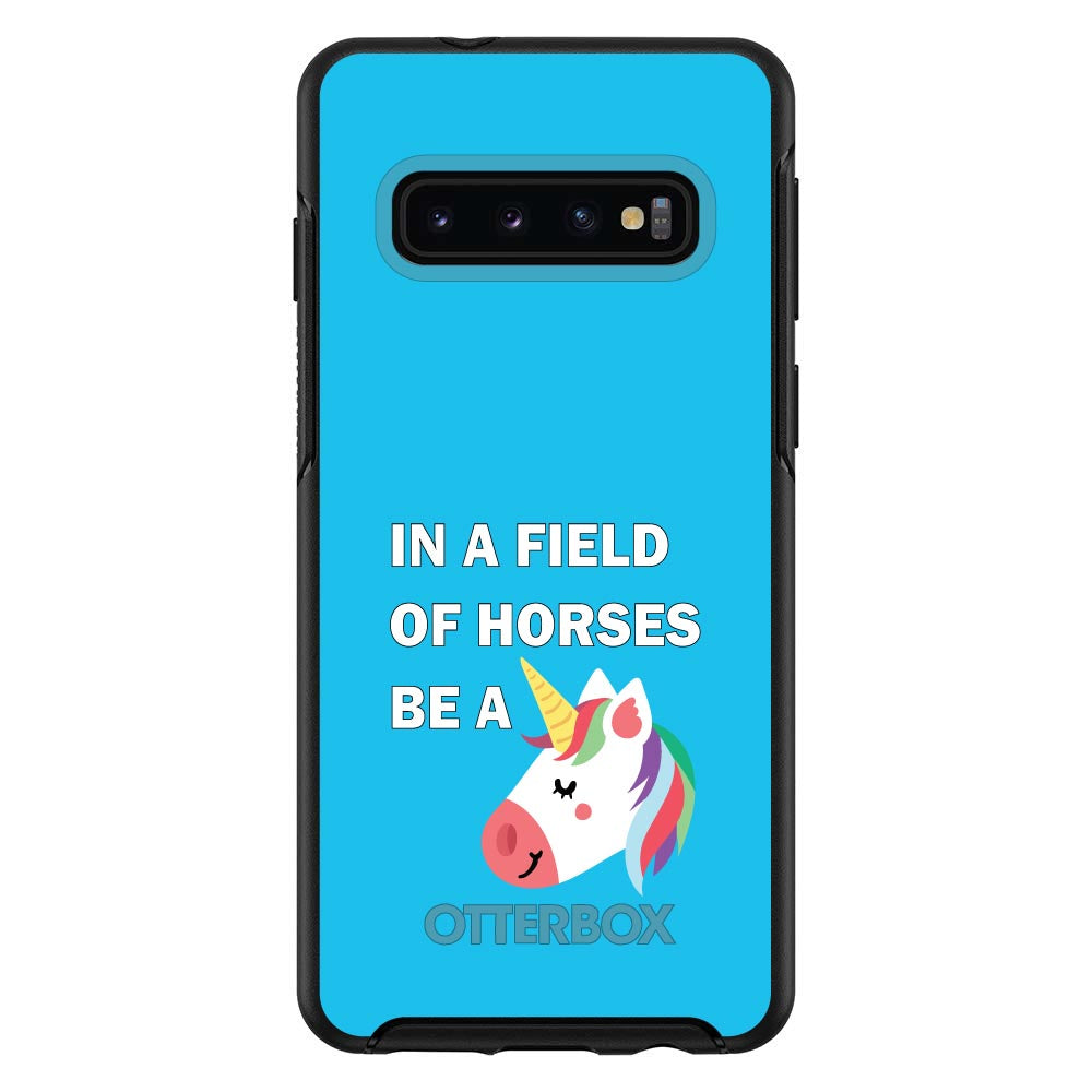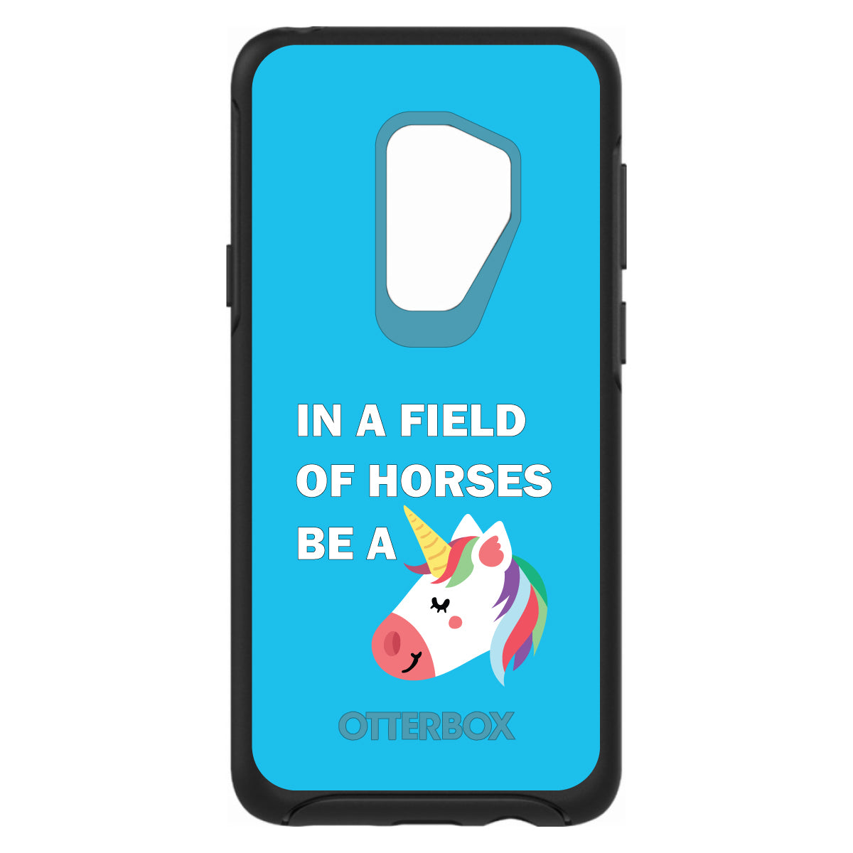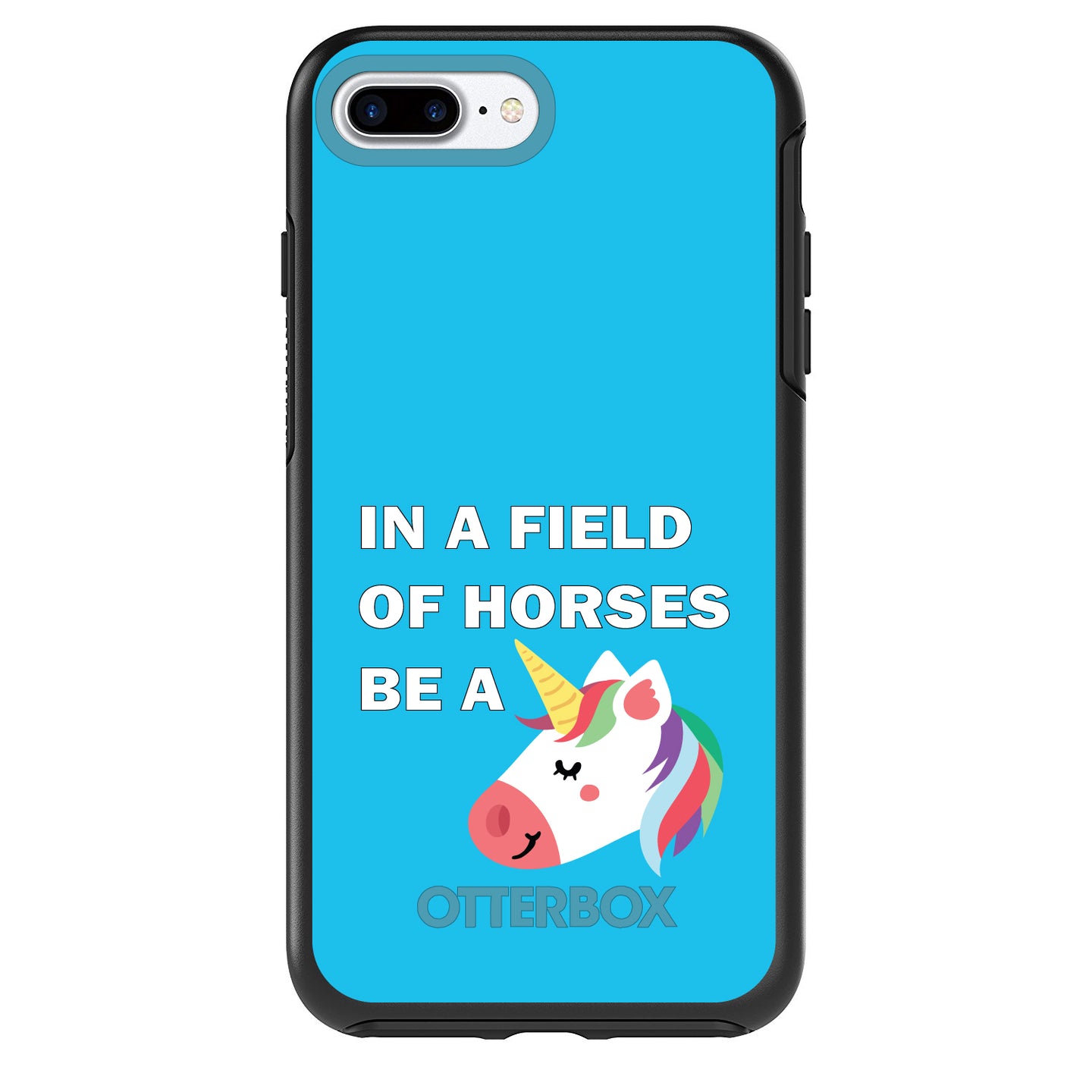 DistinctInk™ OtterBox Symmetry Series Case for Apple iPhone / Samsung Galaxy / Google Pixel - In a Field of Horses, Be a Unicorn - Blue
