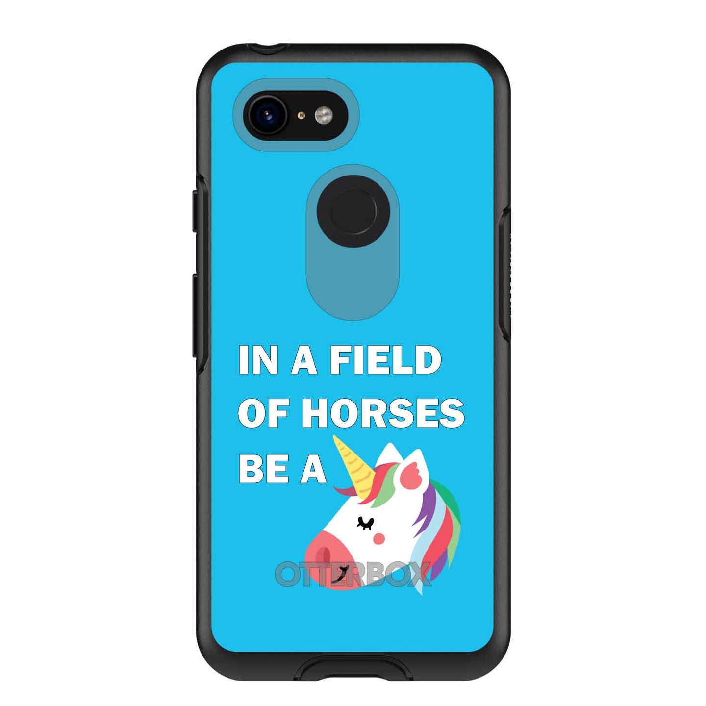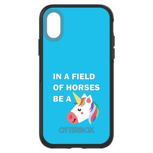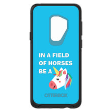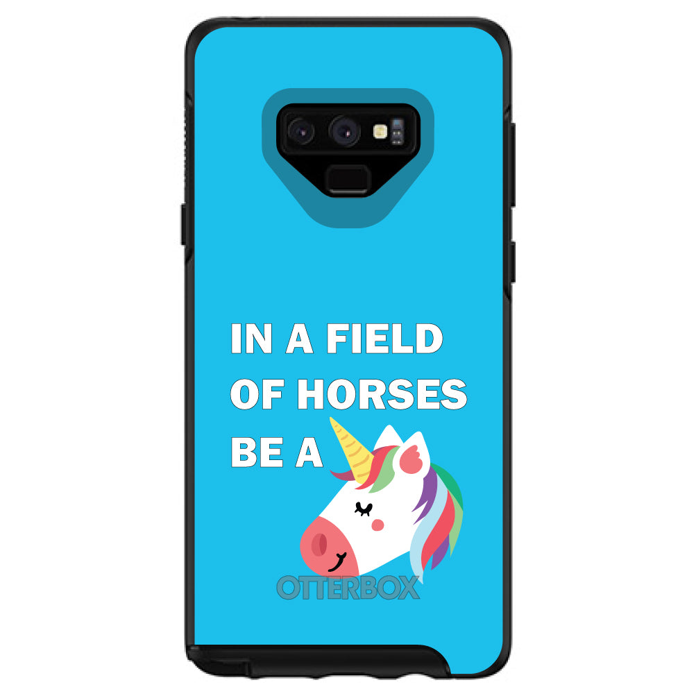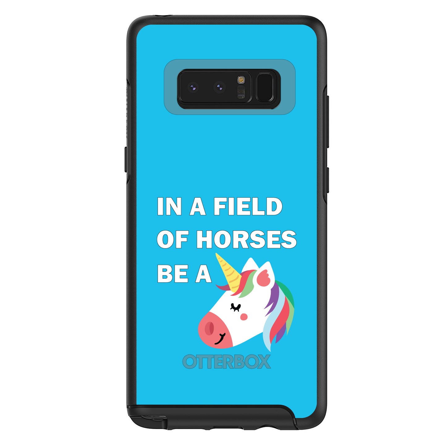 DistinctInk™ OtterBox Symmetry Series Case for Apple iPhone / Samsung Galaxy / Google Pixel - In a Field of Horses, Be a Unicorn - Blue