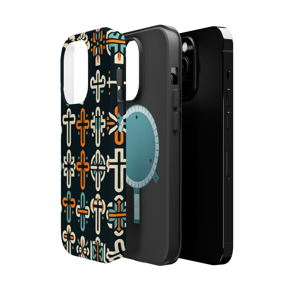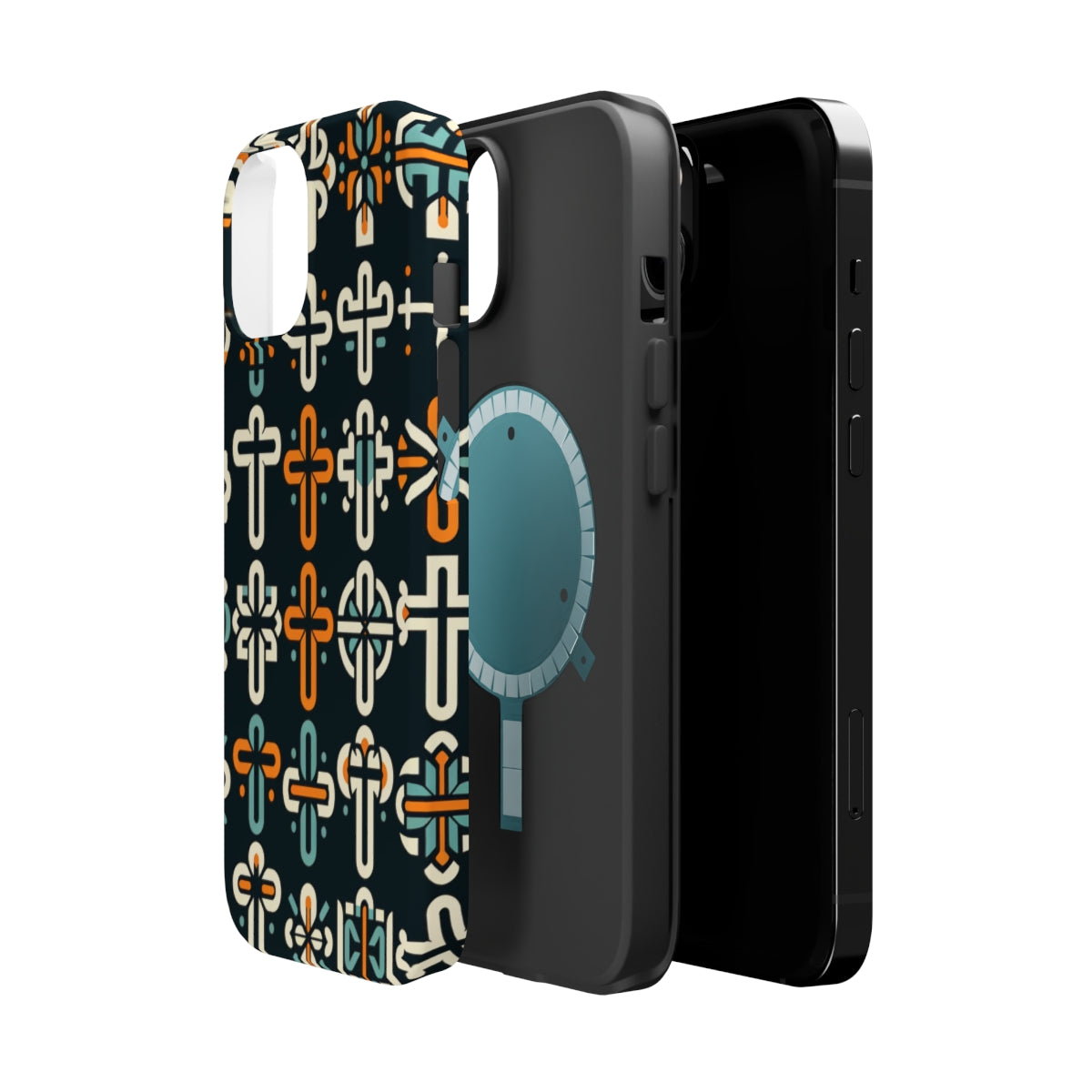 DistinctInk Tough Case for Apple iPhone, Compatible with MagSafe Charging - "Bold and Thin: Vibrant Christian Crosses"