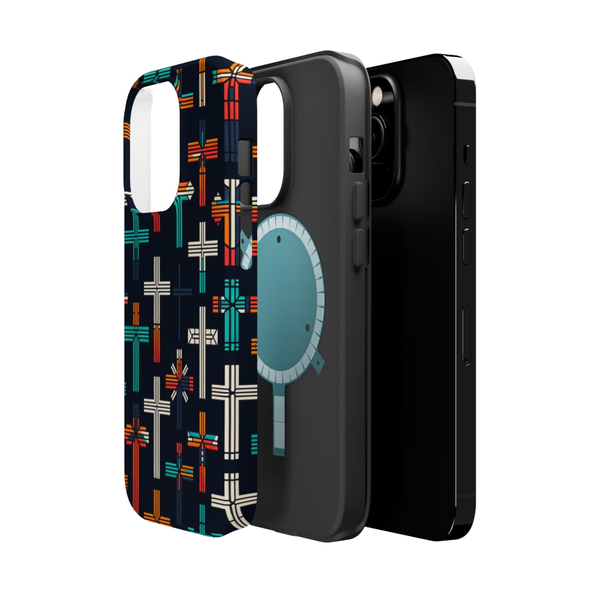 DistinctInk Tough Case for Apple iPhone, Compatible with MagSafe Charging - "Vibrant Crosses: Bold and Minimalistic Pattern"