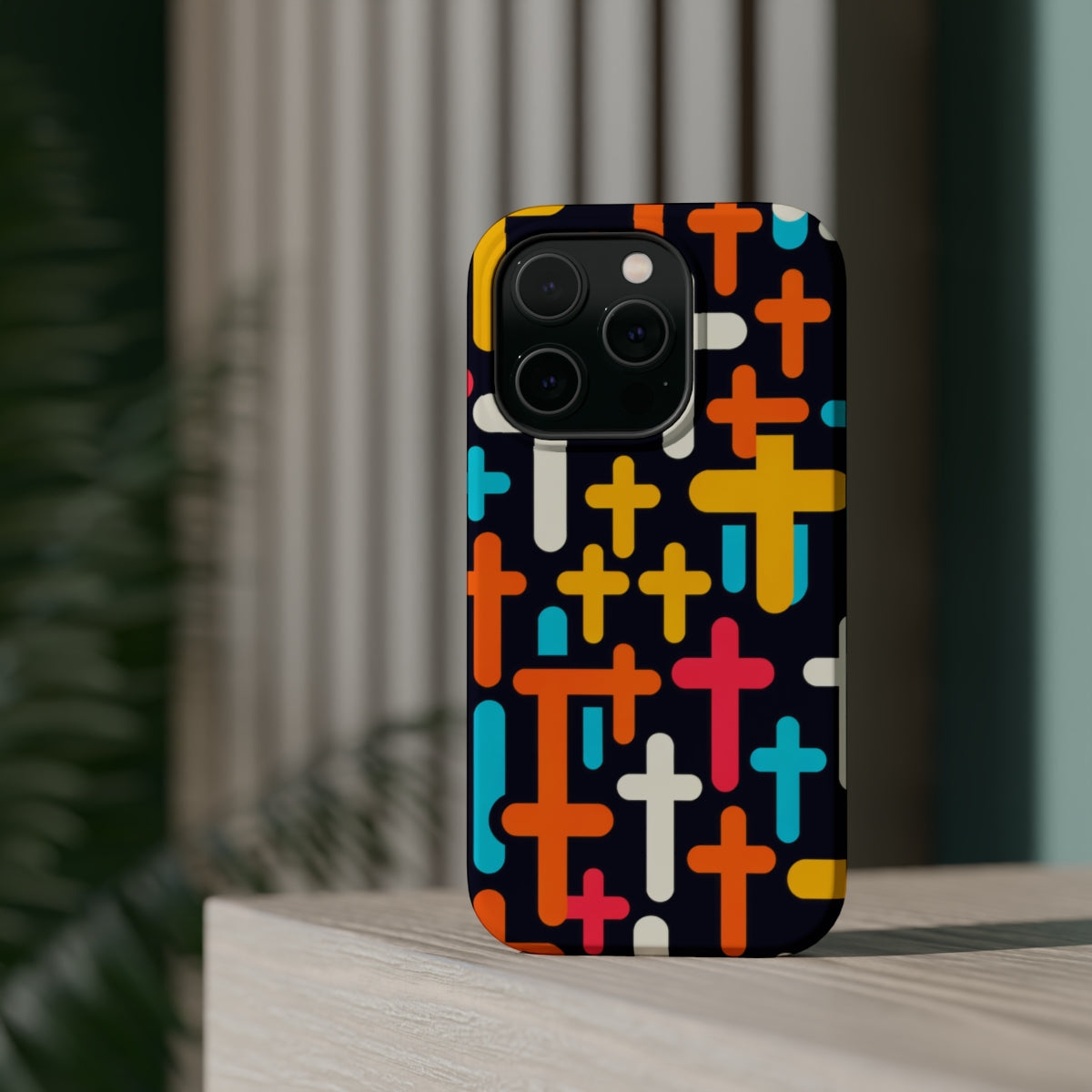 DistinctInk Tough Case for Apple iPhone, Compatible with MagSafe Charging - "Vibrant Minimalist Christian Cross Pattern"
