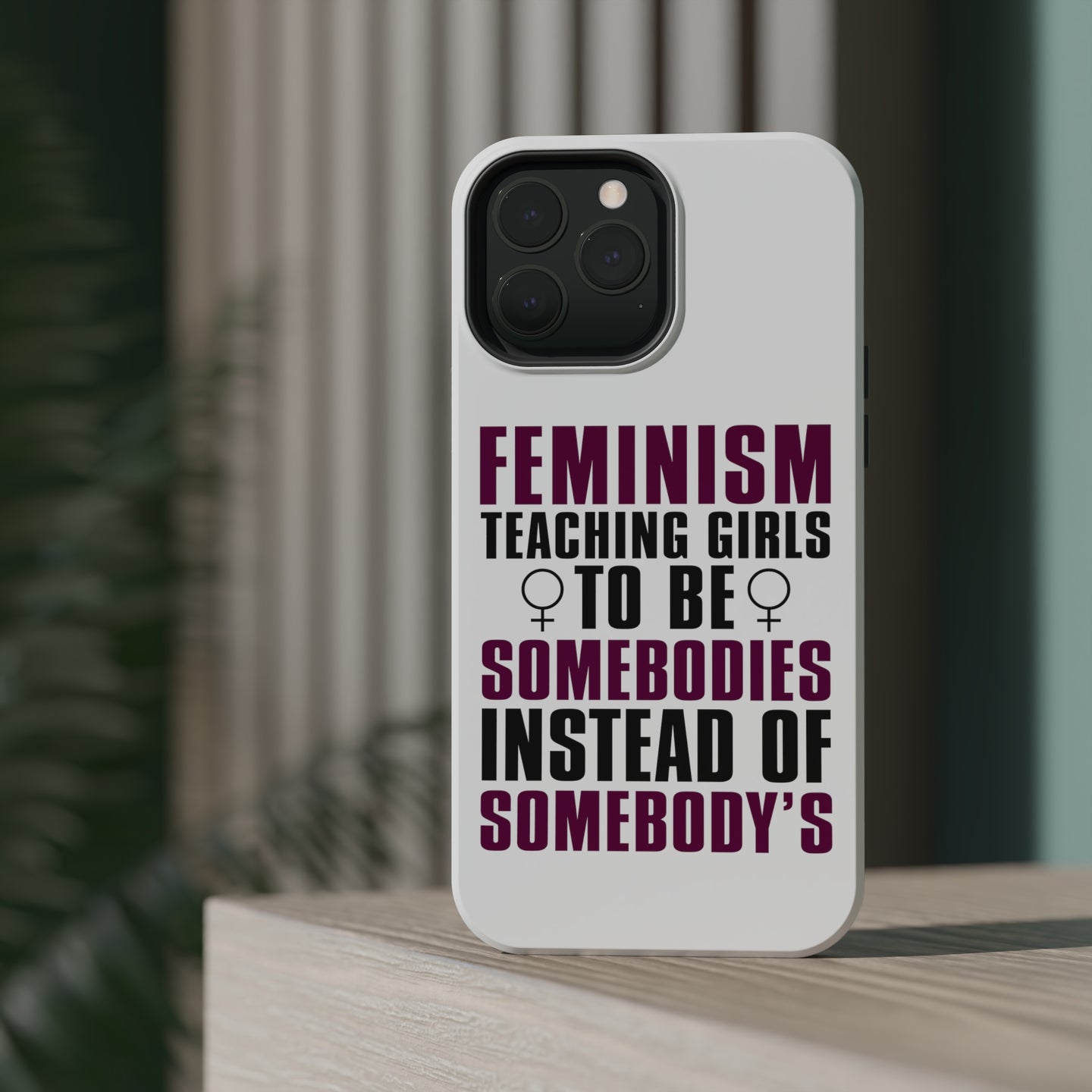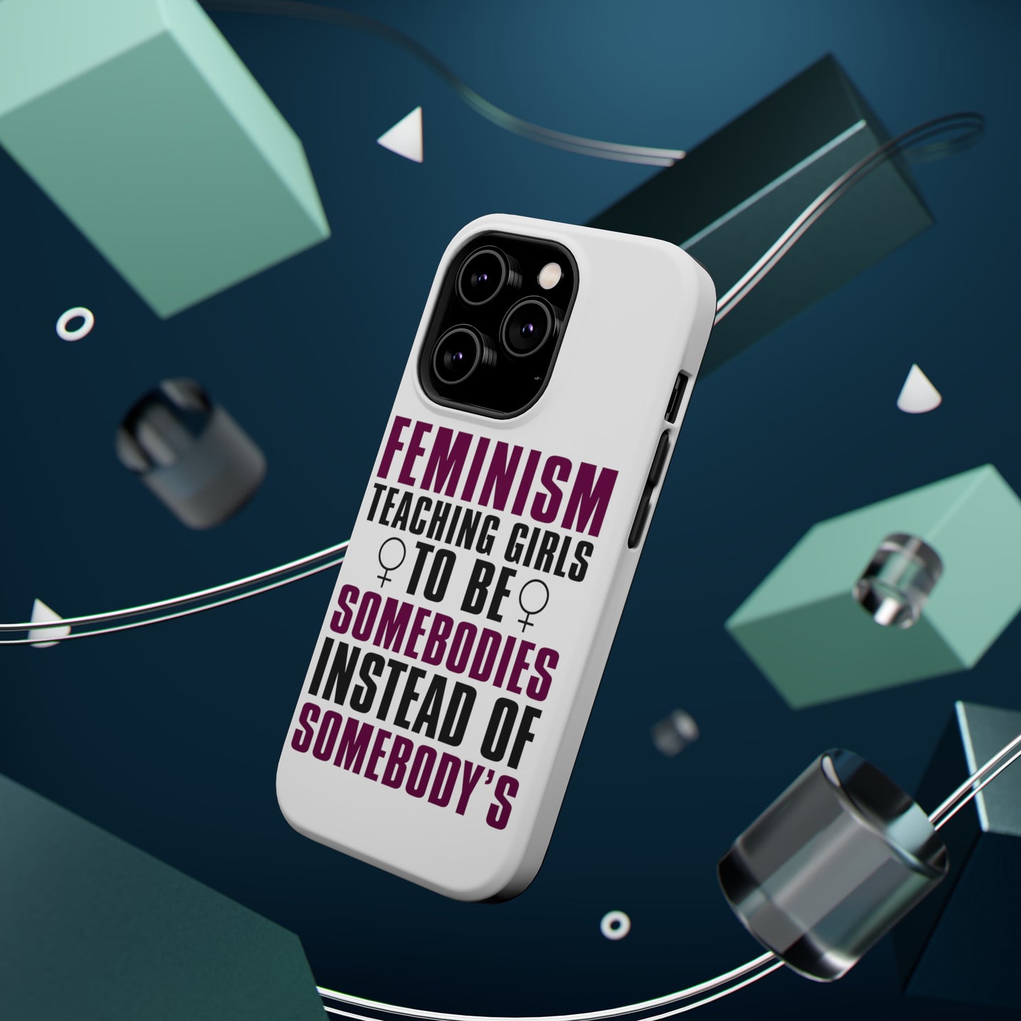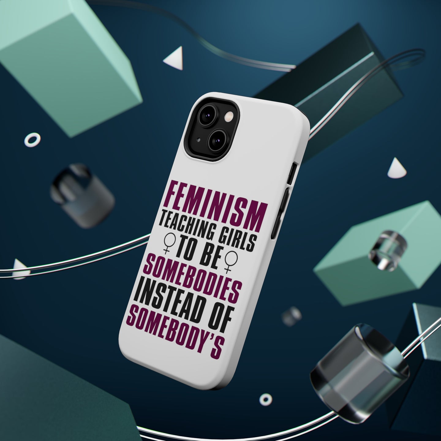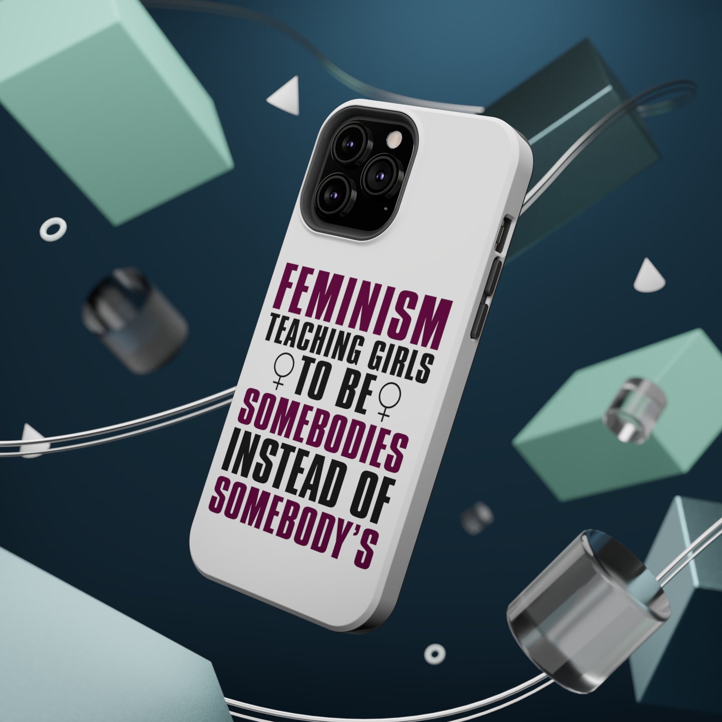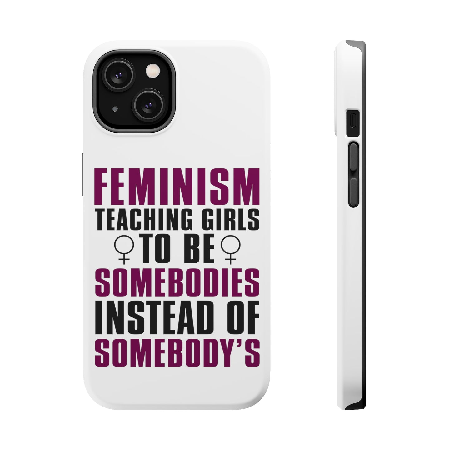 DistinctInk ToughCase for Apple iPhone, Compatible with MagSafe Charging - Feminism - Somebodies vs Somebody's