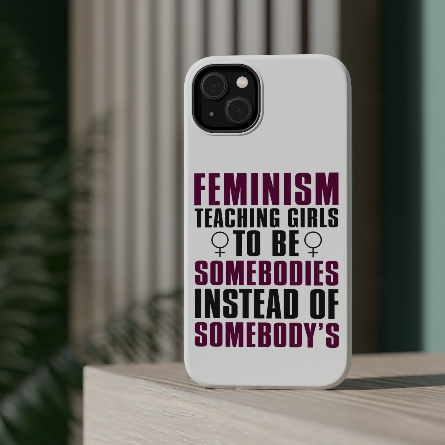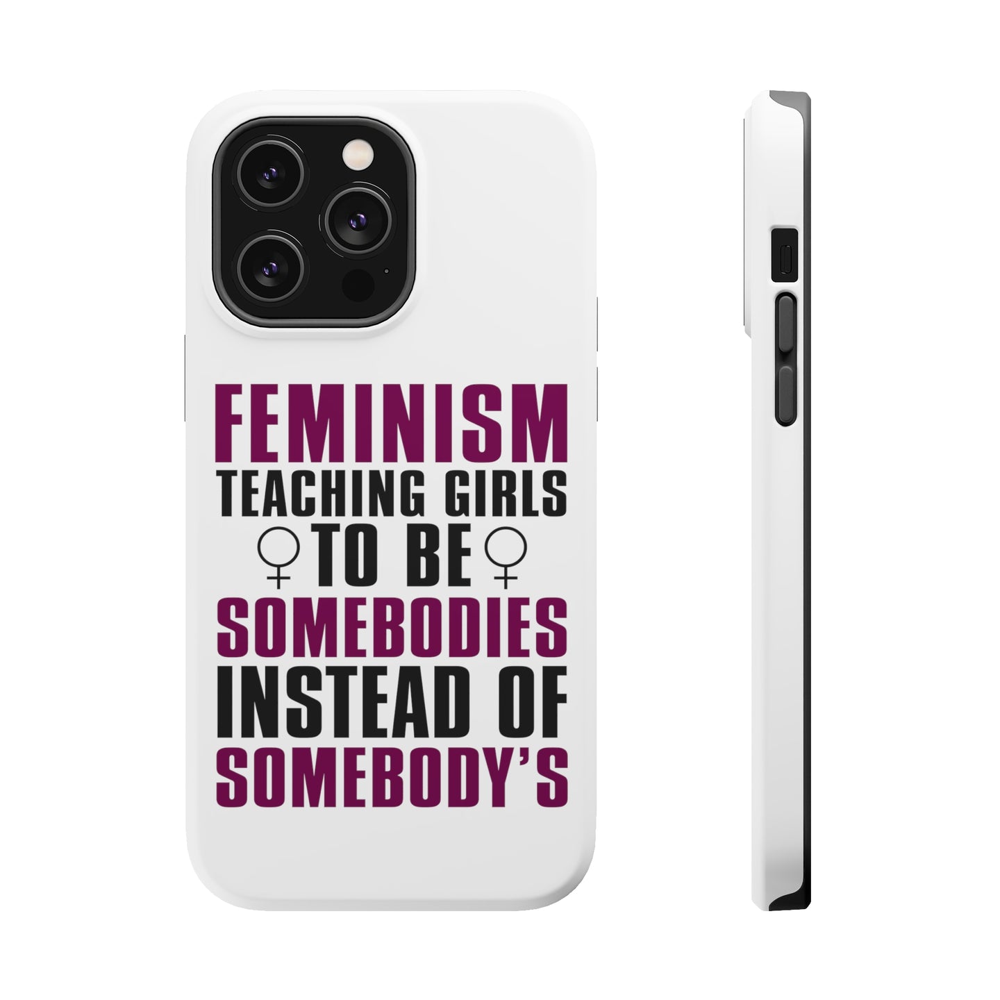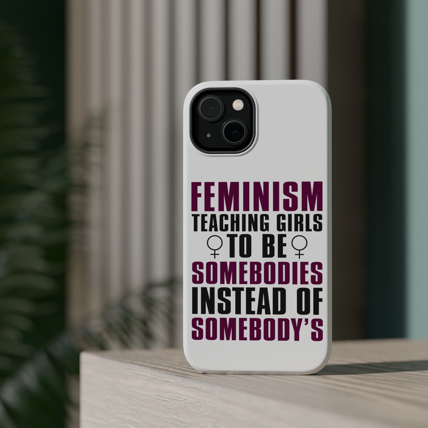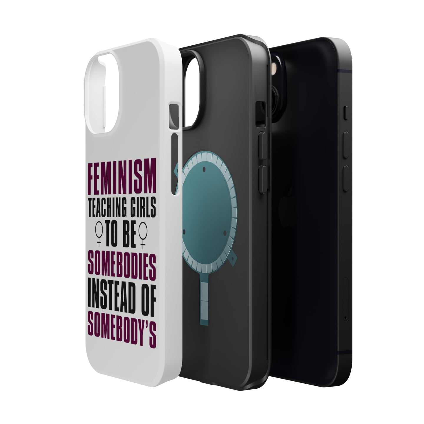 DistinctInk ToughCase for Apple iPhone, Compatible with MagSafe Charging - Feminism - Somebodies vs Somebody's