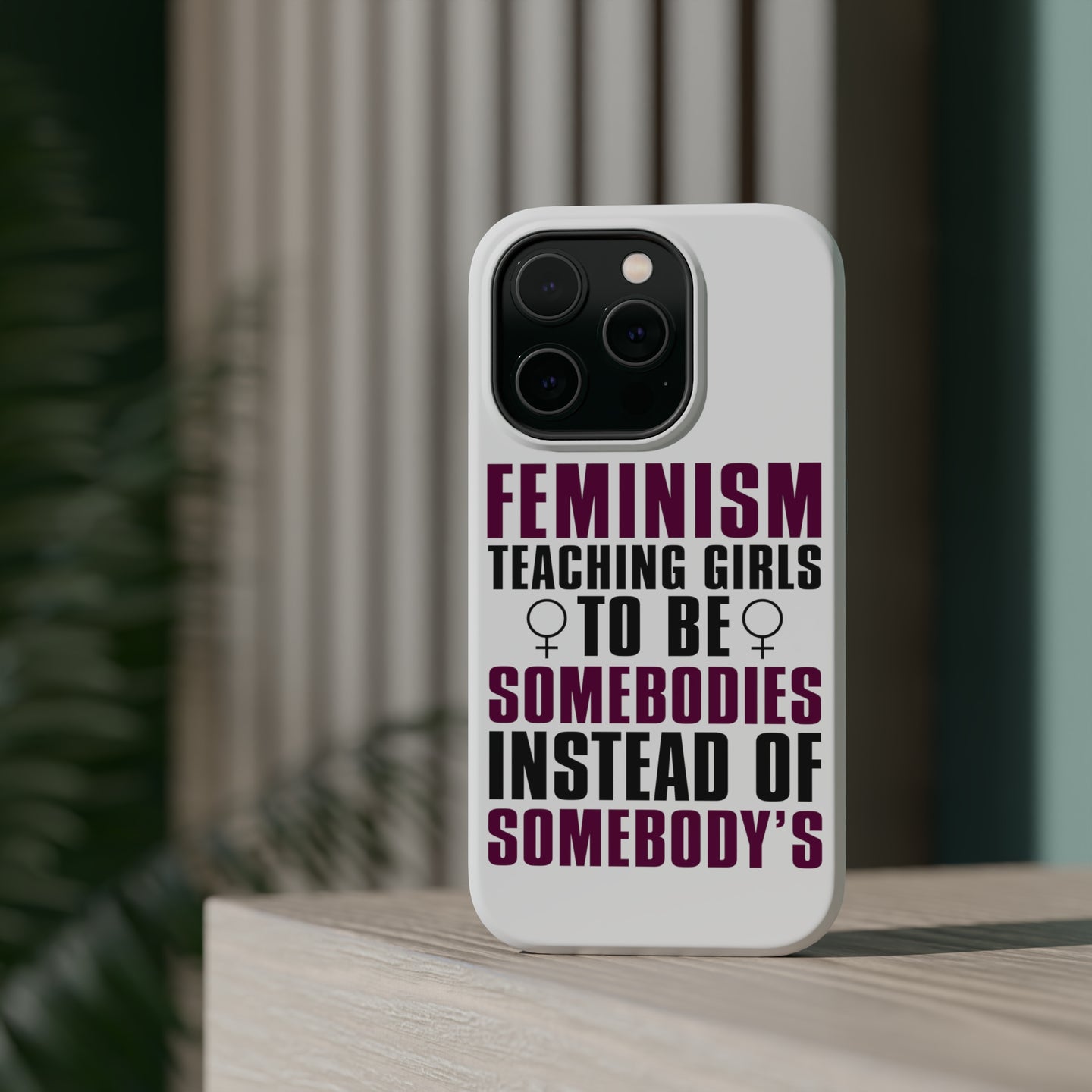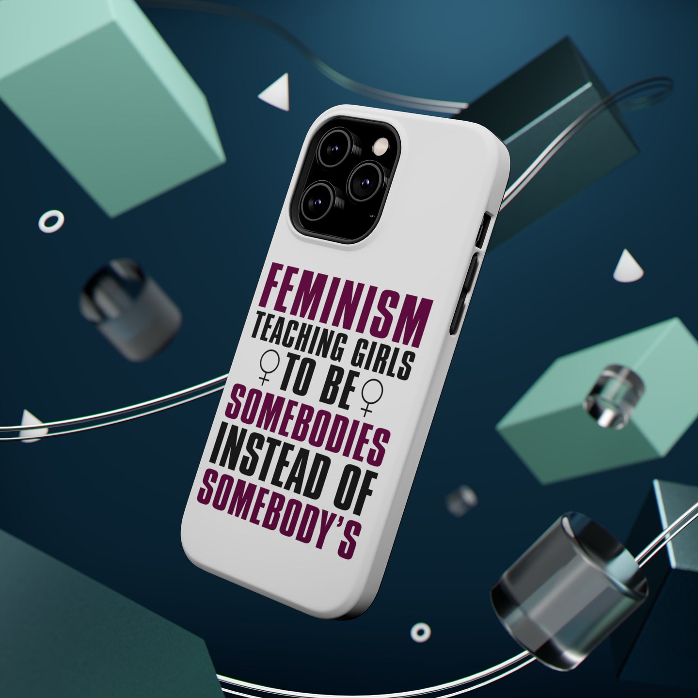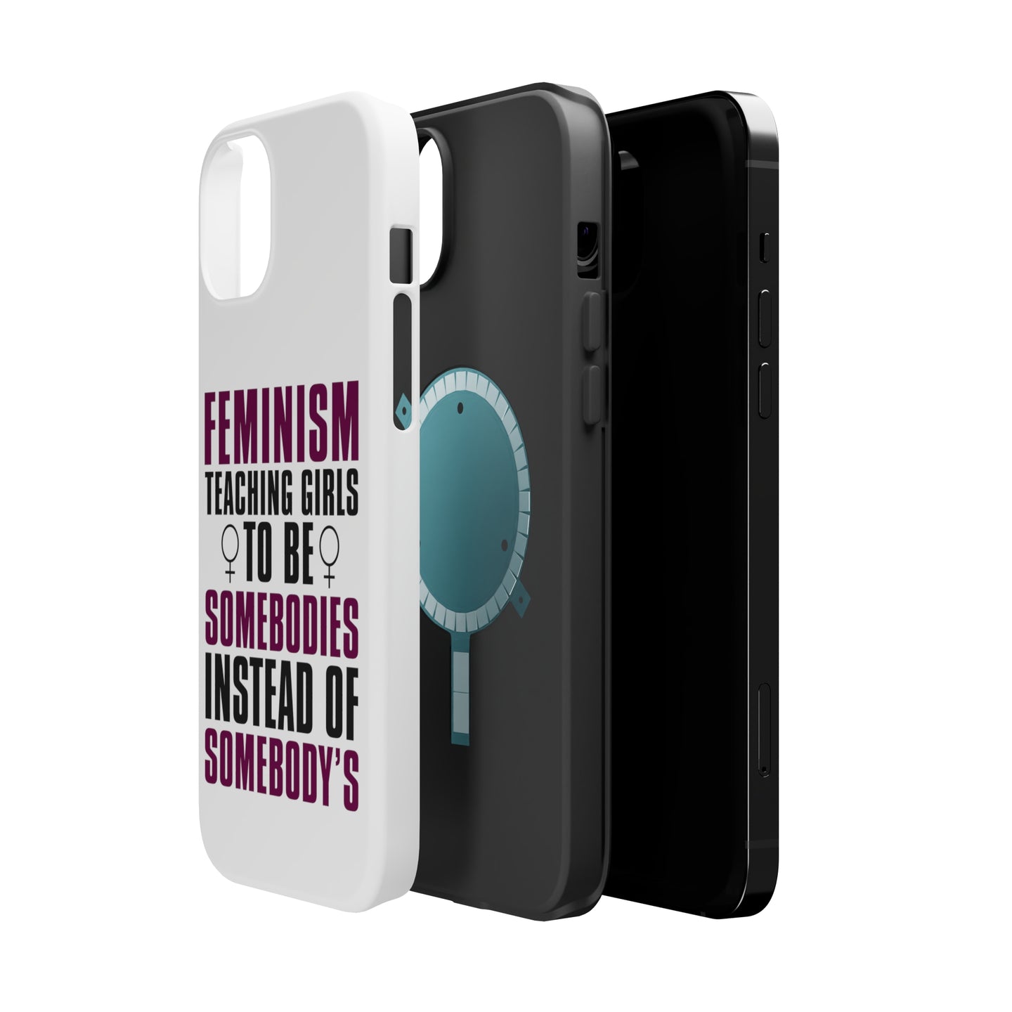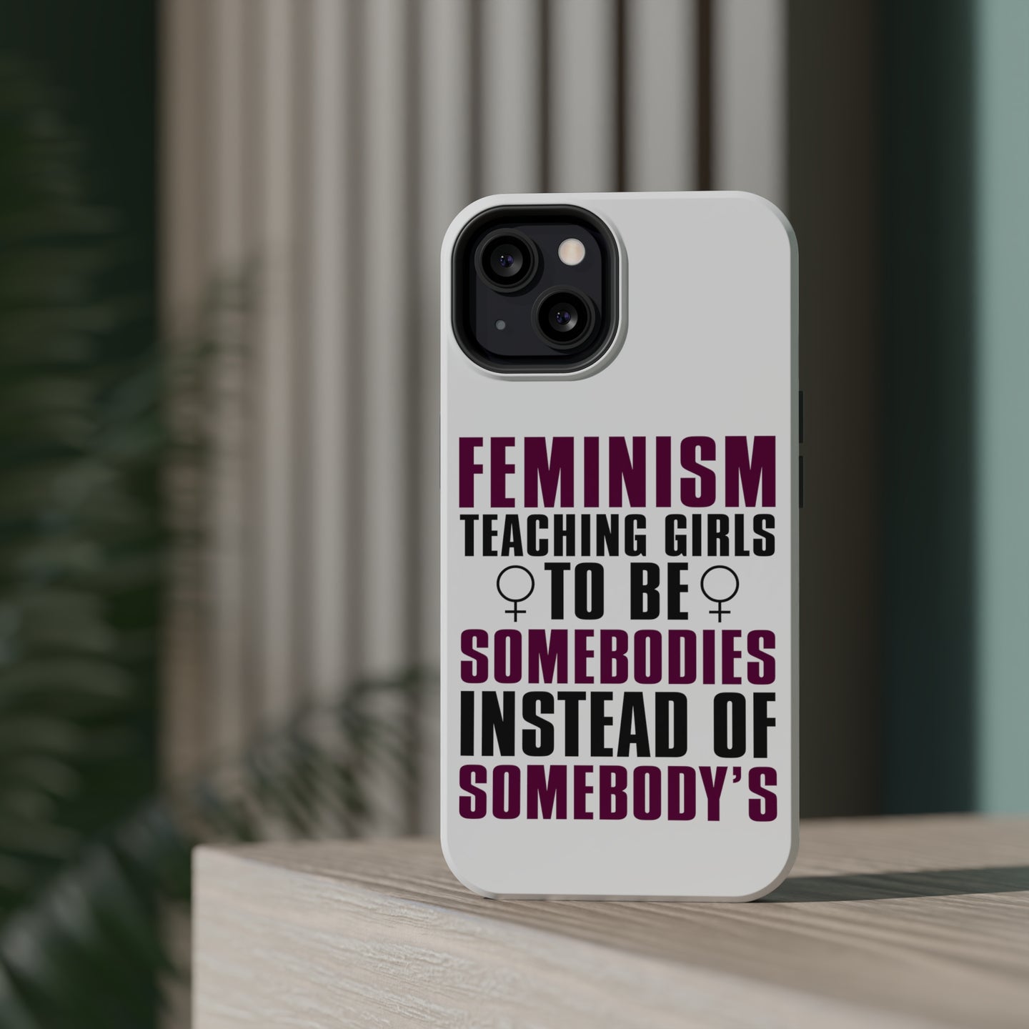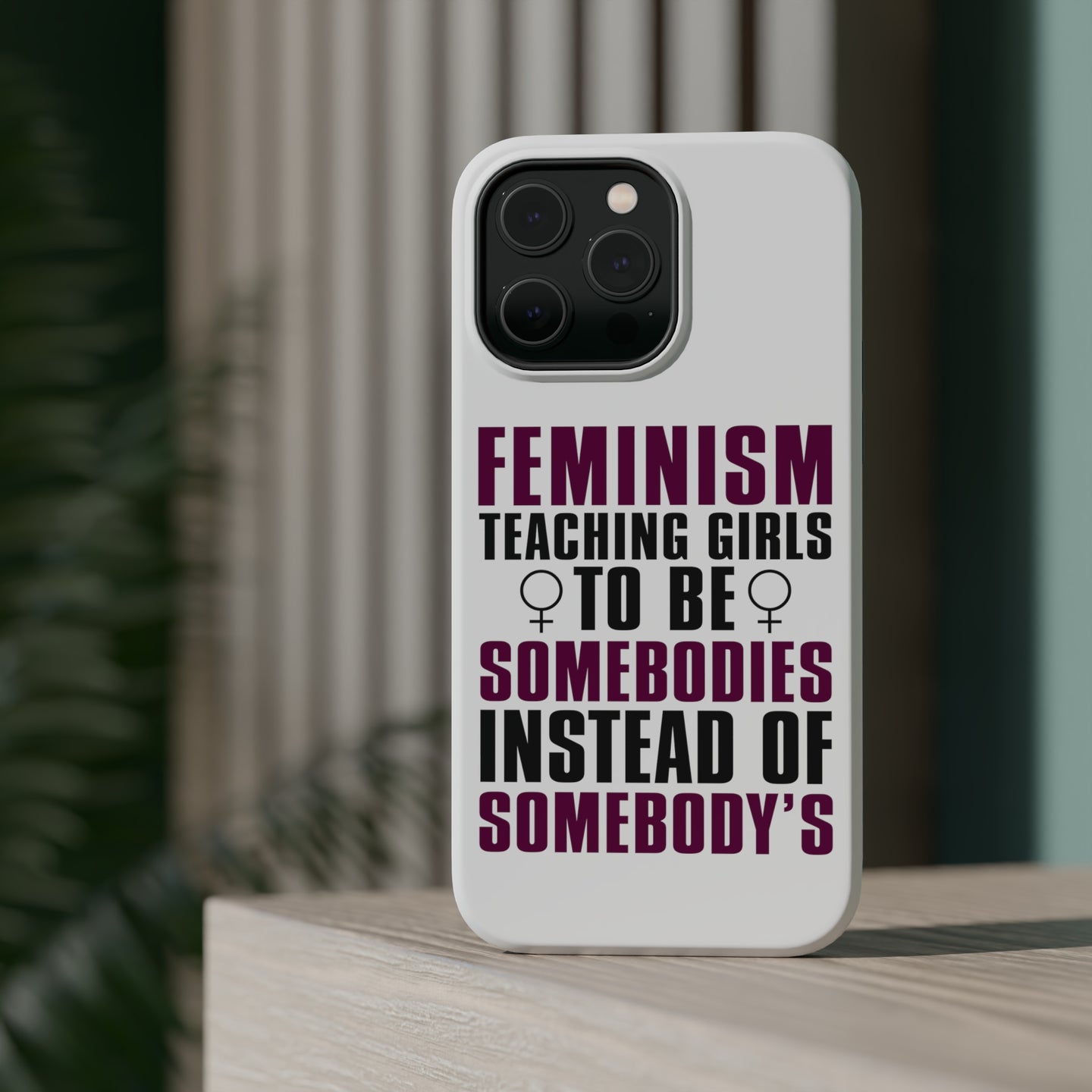 DistinctInk ToughCase for Apple iPhone, Compatible with MagSafe Charging - Feminism - Somebodies vs Somebody's