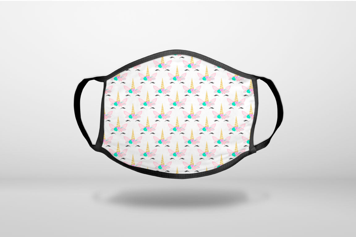 Pastel Unicorn Pattern - White Pink Teal - 3-Ply Reusable Soft Face Mask Covering, Unisex, Cotton Inner Layer